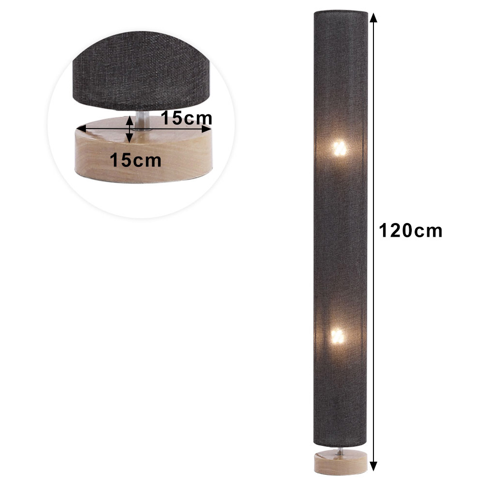 Add a warm, modern glow to your home with the Living and Home Grey Wooden Column Floor Lamp. Ideal for the living room, bedroom or hallway, this floor-standing lamp features a round wooden base and a tall fabric cylinder shade for a clean, contemporary look. Designed with energy efficiency in mind, it supports two bulbs (not included) and is easily operated using a convenient footswitch. A non-slip pad on the bottom keeps the lamp stable while protecting your floors.