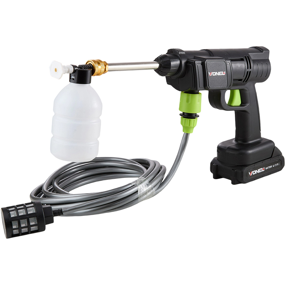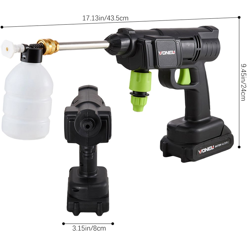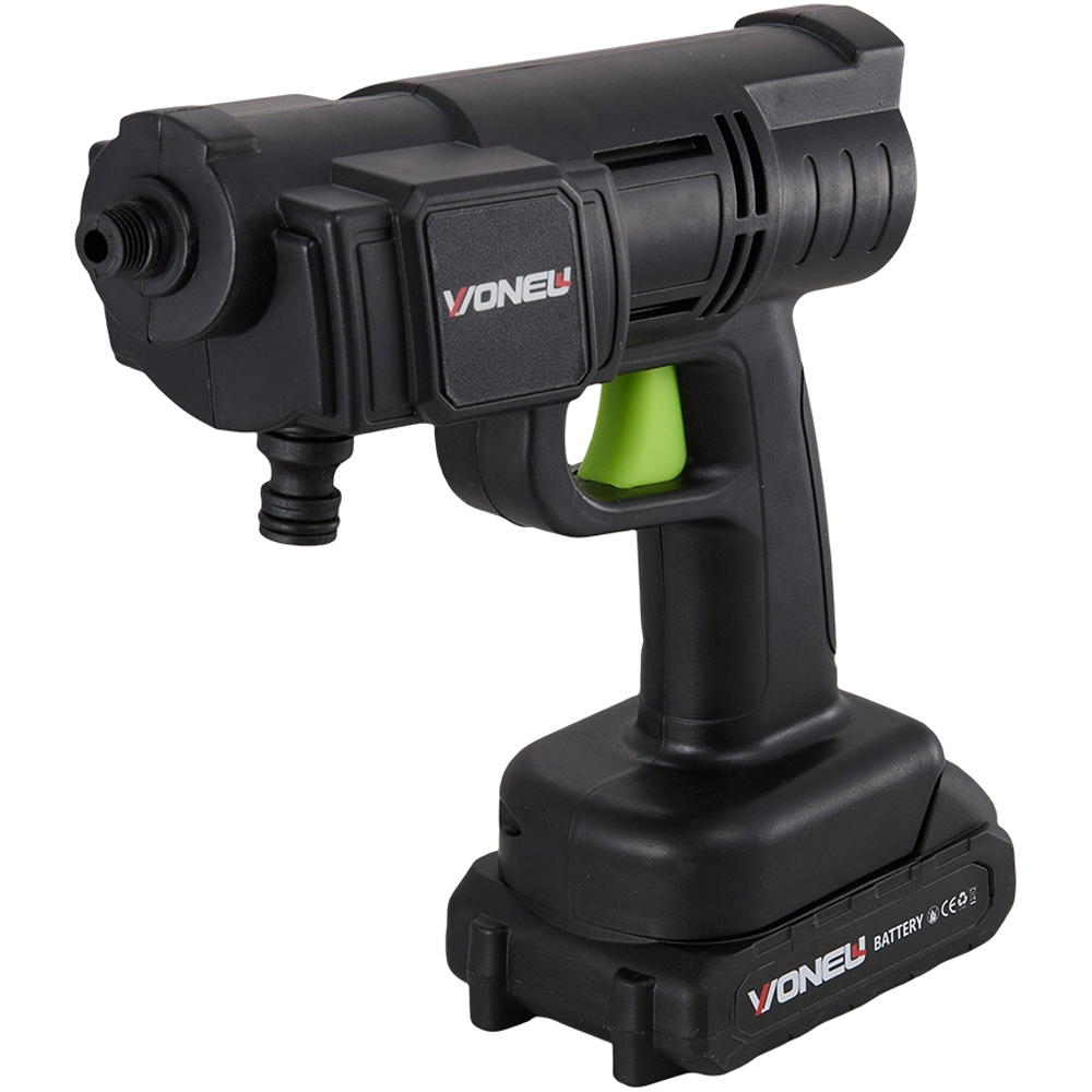 Tackle all your outdoor cleaning tasks with ease using this Cordless Handheld Pressure Washer from Living and Home. Whether you’re watering plants, washing your car, or cleaning your patio, this versatile tool delivers powerful performance in a compact, portable design. Equipped with a high-efficiency motor, it produces strong water pressure to handle tough dirt and grime. The rust-resistant stainless steel extension rod extends your reach and enhances spray precision, while the five-meter hose with a built-in filter basket helps block impurities, leaves, and sludge—offering added protection for the machine and ensuring a clean water supply. Choose between two spray nozzles—high-pressure jet or fan-shaped mist—to suit different cleaning needs. Thanks to its cordless design and high-capacity rechargeable battery, you’re free to move and clean without the limitation of power cords or outlets. Perfect for gardens, cars, bikes, windows, and more, this pressure washer is your go-to solution for fast, efficient, and convenient outdoor cleaning. Crafted from compact and lightweight nylon for enhanced durability and a comfortable, easy-to-hold grip. Built-in ventilation slots help dissipate heat efficiently, ensuring stable performance during use. Equipped with a high-capacity battery that delivers consistent, extended power for longer cleaning sessions.