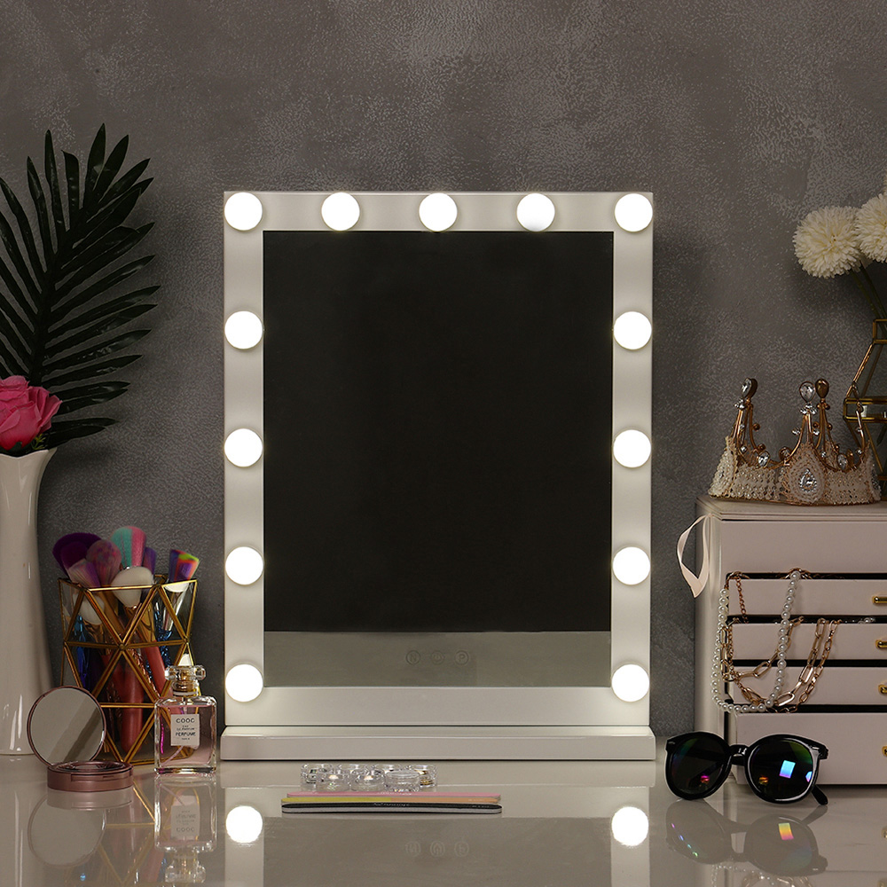 Living and Home Hollywood Style Lighted Rectangular Makeup Mirror with Base