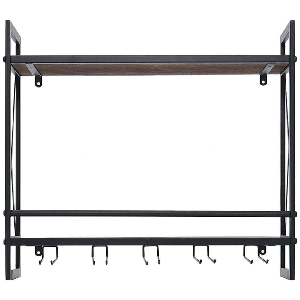 The Living and Home Wall Mounted Industrial Wine Glass Rack is a perfect solution to put up the delicate wine glass, and mugs in your home. The industrial iron frame makes it more durable and stable, there will be no more worry about your wine glass and mugs falling from this rack. Two layers are made of natural wood, providing a classic sense to your home. What's more, with these two layers, this wine glass shelf gives you plenty of room to store wine, vases, books, and other accessories.