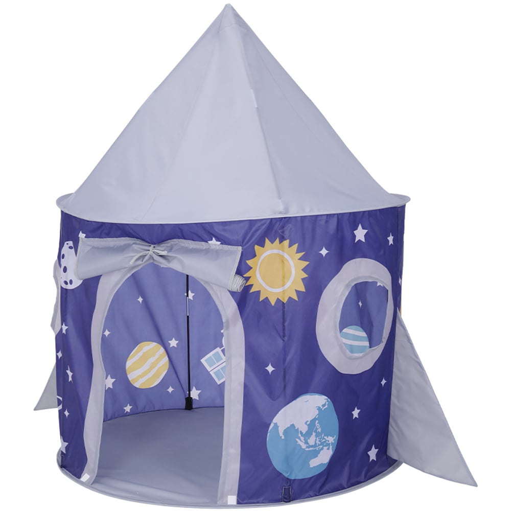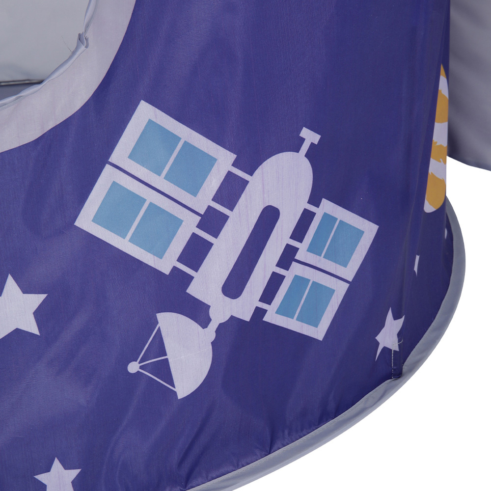 Let your kids take flight with the Living and Home Kids Space Theme Popup Play House Tent. This tent is made from high-quality, non-toxic polyester and features a roll-down door flap and peek-a-boo windows. It is adorned with the Sun, the Earth, and stars in vibrant colours, which will inspire your little astronauts. The kids will get instant playtime fun thanks to its popup setup. When the adventures are over, the tent can be folded down for easy storage.