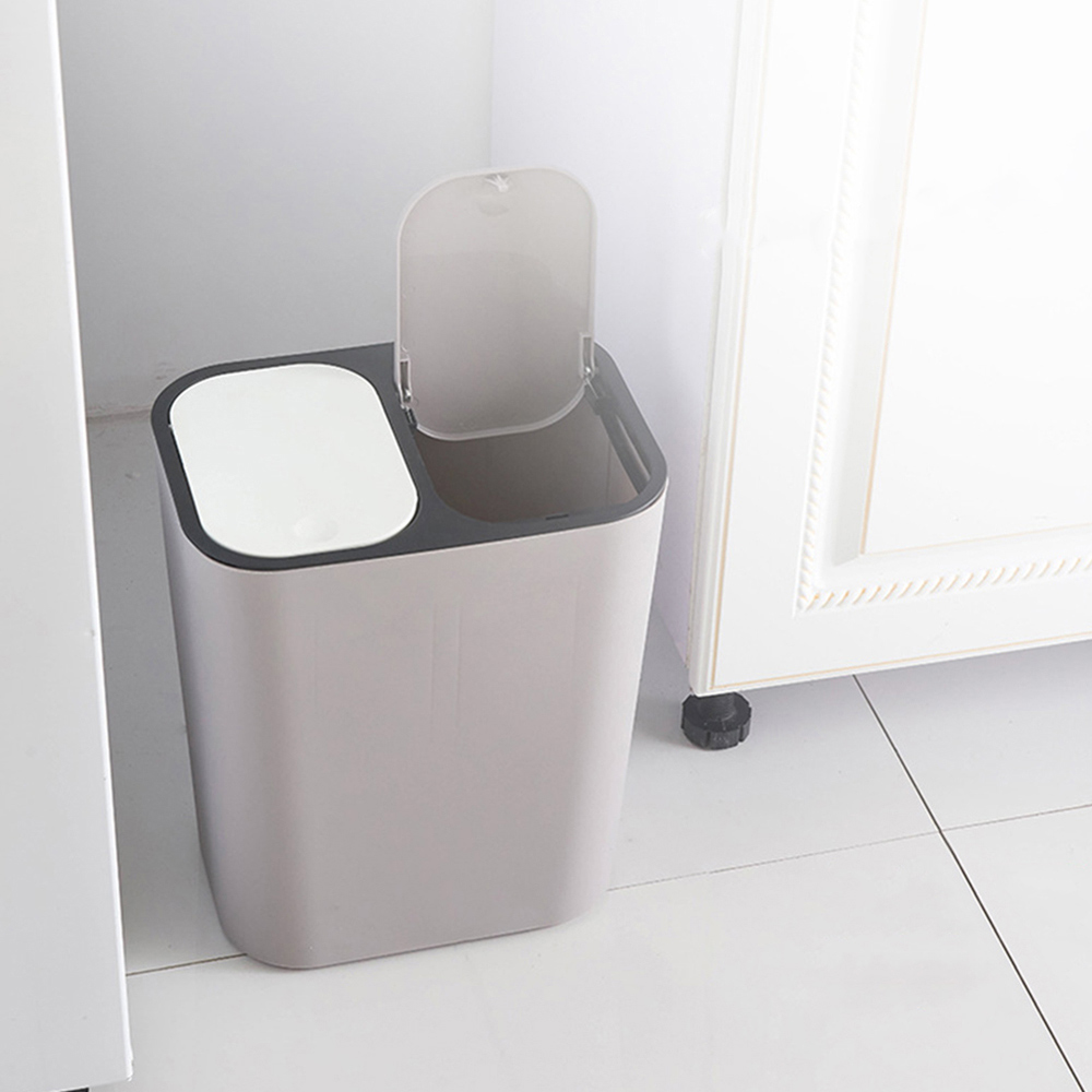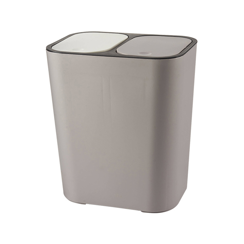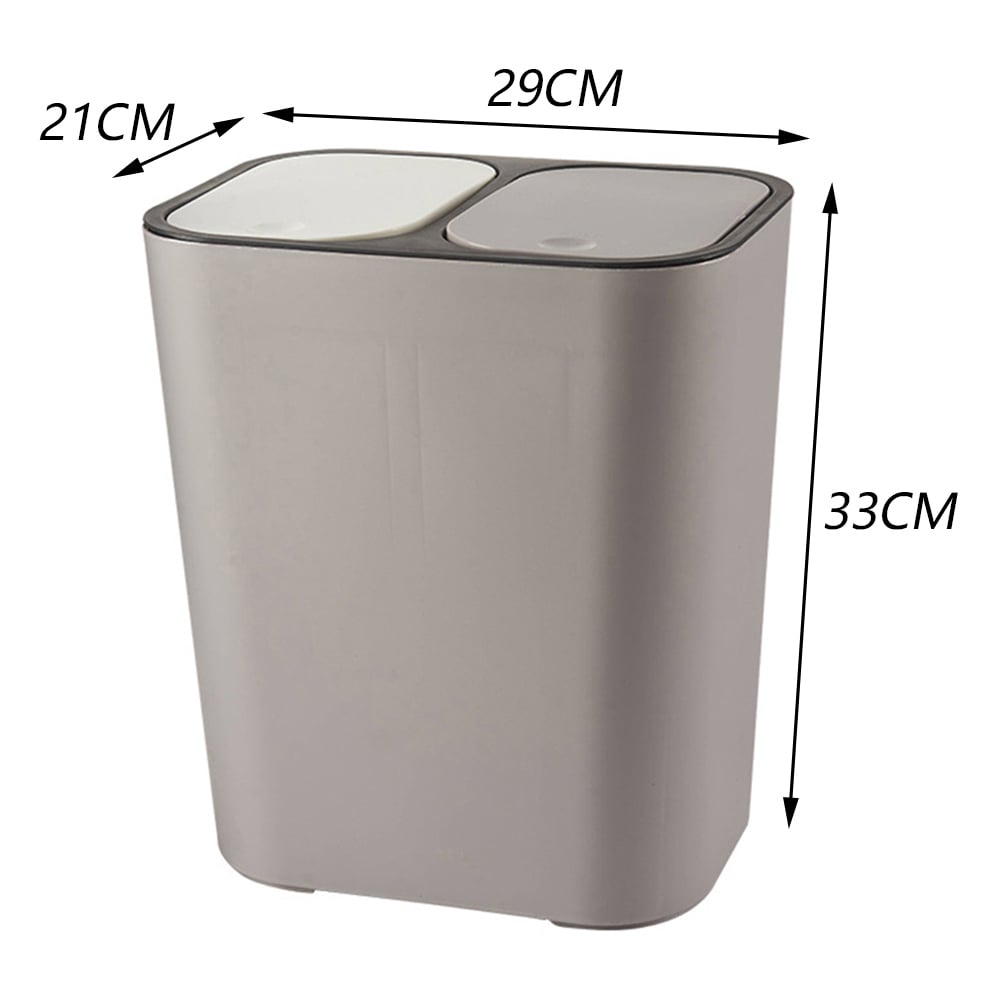 Bring the ultimate convenience to your home with this Living And Home Grey Double Bucket Kitchen Recycling Bin 15L. With two independent inner buckets, this trash can is perfect to separate trash and recycle. To maintain hygiene, it comes with a pop-up lid that's clean and works on a simple press to open or close technology. Durable and sturdy, the bin is made with high-quality materials to last for a long time. Capacity: 15L. Size: H33 x W29 x D21cm.