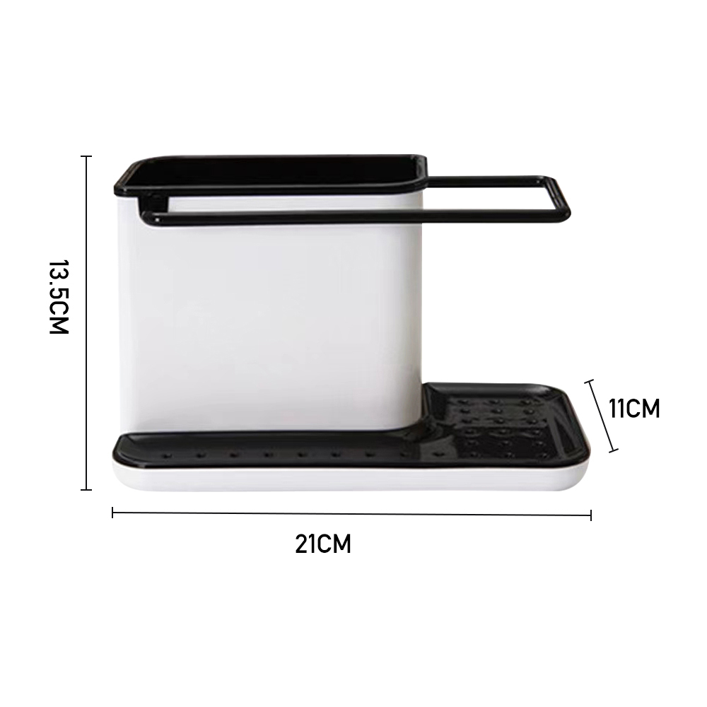 Organise your sink area with this Living and Home White and Black Kitchen Sink Caddy Organiser. Perfect for your kitchen sinks, this handy and practical accessory is ideal for tidying away cleaning brushes, sponges, and cloths and storing washing-up liquid. Crafted with BPA-free plastic, this sink organiser is very safe and durable. Also, it comes with a large draining plate to catch any excess water and wave goodbye to soapy residue at the side of your sink. Easy to use, simply detach the drip tray and reservoir below to clean it. Size: H13.5 x W21 x D11cm.