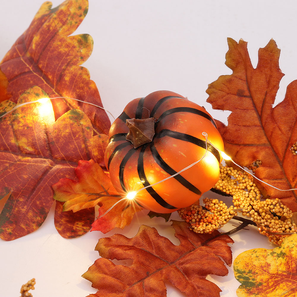 Discover the enchanting essence of fall with the Living and Home LED Garland with Sunflower and Pumpkins 180cm. This stunning garland goes above and beyond, perfect for embellishing weddings, adorning fireplace mantels, and adding a whimsical touch to your mailbox. The rich and enchanting ambience of autumn is brought to life with this garland, boasting a warm colour palette and adorned with flourishing sunflowers, pumpkin foliage, and charming tiny pumpkins. Crafted from eco-friendly plastic material, it's not only beautiful but also healthy. To complement this stunning display, a 3.8m LED light string is included in the set, ready to illuminate your decor and enhance the seasonal splendour. With its generous length, this garland is long enough to cover any space you desire. Dimensions: 10 x 180 x 10cm.