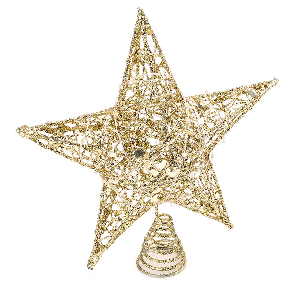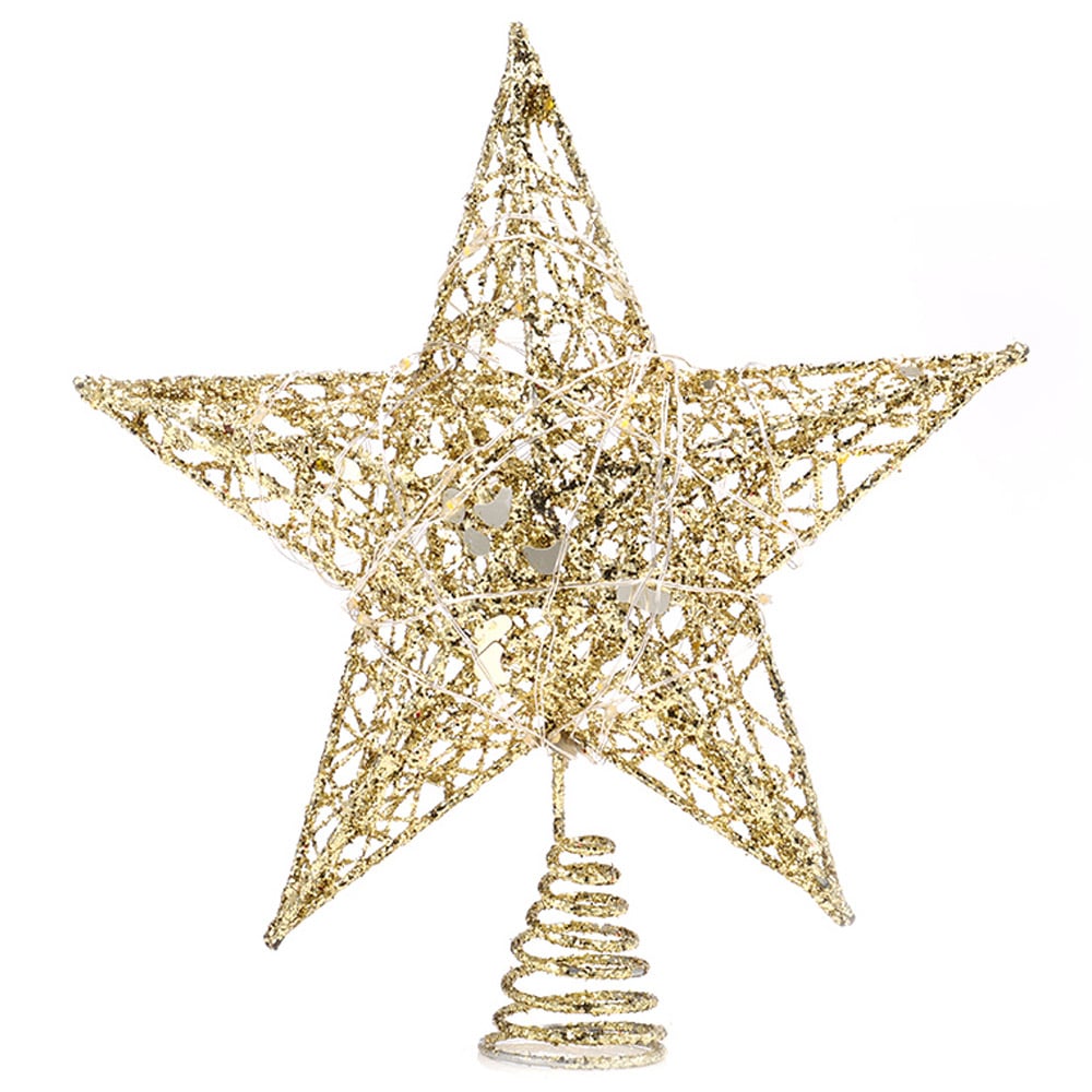 Light up your home and create the perfect festive atmosphere with this Living and Home Gold Star Tree Topper. Place the star tree topper on the top of the Christmas tree and adjust the angle to keep it upright. This stunning Christmas tree topper in gold comes with LEDs. It adds the perfect elegance and shine to your Christmas tree.