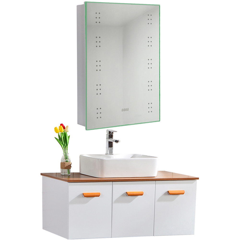 This Living and Home mirror cabinet helps you save more room by hiding a storage shelf behind the mirror. With the fog-resistant technology, you can enjoy your shower, and the mirror still remains bright and clean after you finish. The mirror cabinet looks high-end. Thus it will fill your bathroom with a luxurious atmosphere. It has an electric clock to remind you of the time to prevent being late. There are two glass shelves inside, which are abundant to store your bathroom necessities. Plus, with the LED beads on the side, the cabinet would offer you a dreamy glow when you want to look at your face closely. With a fast-respond sensor switch, the light is convenient to turn on and off without touching.