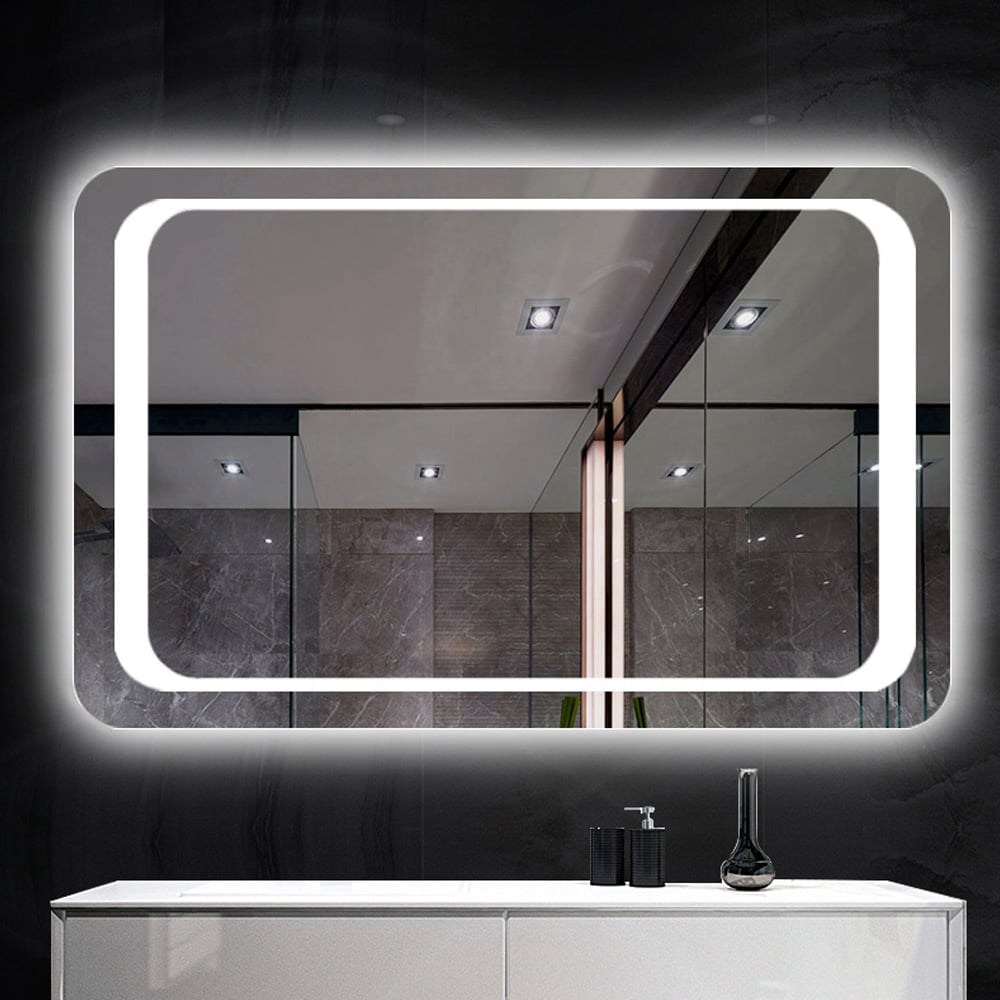 Transform your bathroom into a luxurious retreat with the wall-mounted mirror. More than just a functional piece, this mirror seamlessly integrates into your space, creating the illusion of a larger, brighter room. The integrated LED lighting system elevates your grooming routine by providing bright, even light that allows you to assess your skin condition with ease. Featuring a sensor-sensitive switch, it combines convenience with sophistication, offering functionality without compromising on style. Its sleek, rounded-edge design brings a modern yet warm touch to your bathroom, creating a relaxing and inviting atmosphere for your daily rituals.