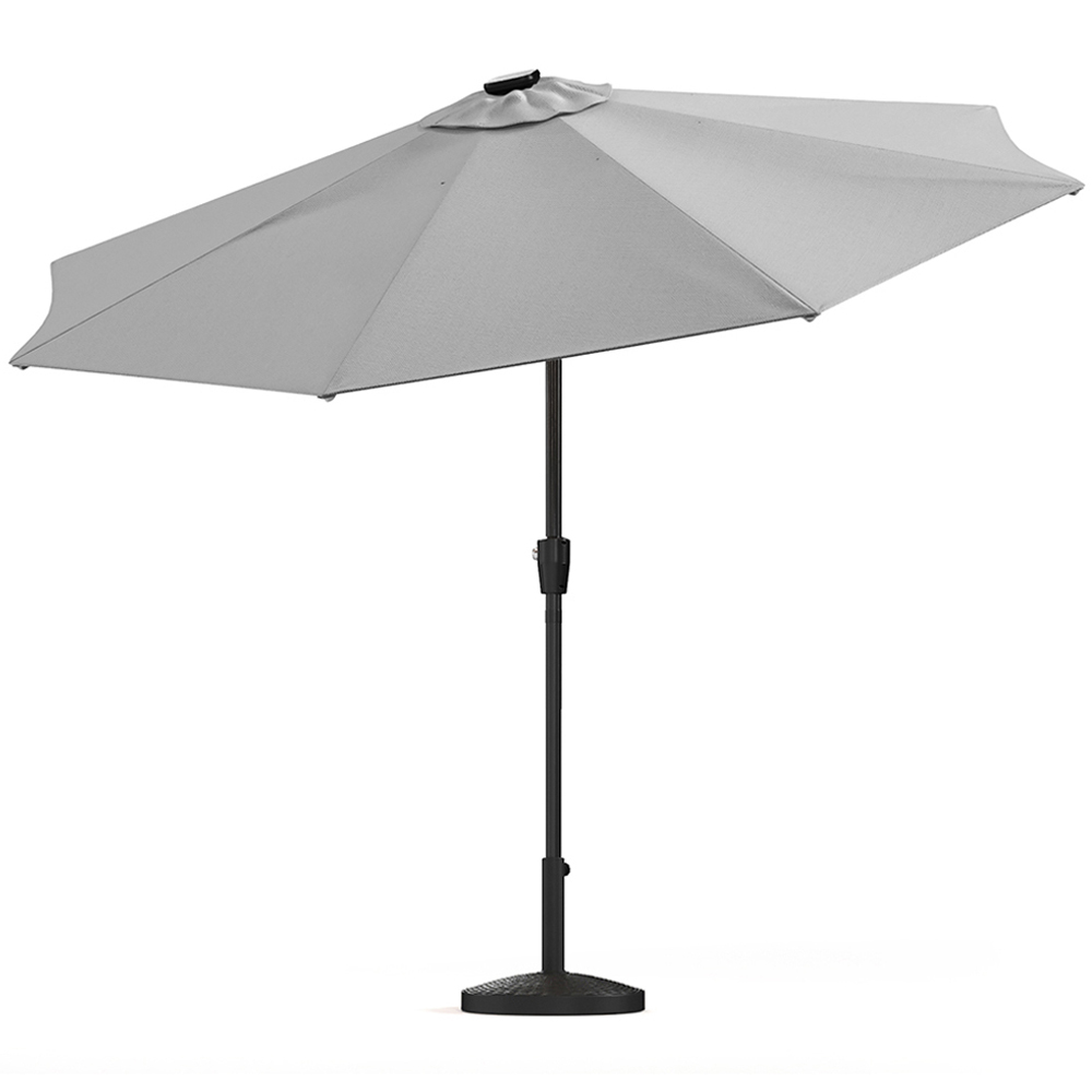 This umbrella exudes a sense of holiday relaxation, sure to evoke memories of the best vacations. Pleasing to the eye and easy to use, it features a convenient crank lift for easy opening and closing. The manual tilt allows for angle adjustments, creating the ideal shade against the sun and wind. With built-in LED strips, this umbrella transforms at night, creating a dreamy atmosphere that enhances any outdoor environment. Better yet, this set contains a base that is not only good-looking but also supportive.