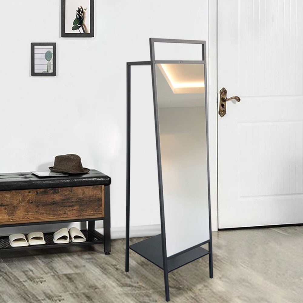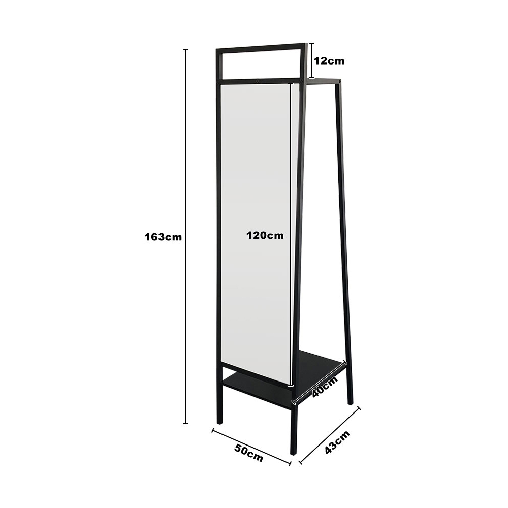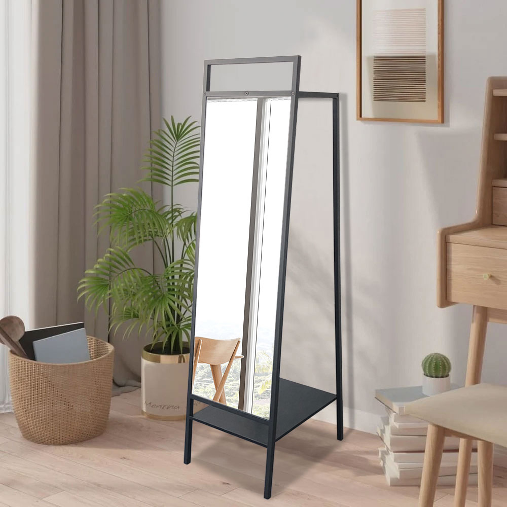 Make a bold statement with the Living and Home floor mirror. This mirror stands tall and proud, commanding attention in any room with its clean silhouette. The sleek black frame adds an edgy touch, while the floor-standing design creates a dramatic visual impact. Reflecting both natural and artificial light, the mirror amplifies the brightness of your space, making it feel more open and inviting. Meanwhile, the built-in coat rack offers a seamless storage solution, keeping your essentials organized and hidden.