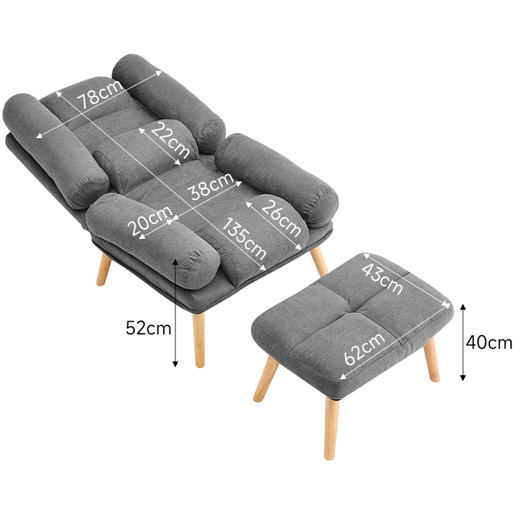 Experience ultimate relaxation with this versatile recliner, designed to transform your living room into a personal retreat. With a simple push, the armchair easily converts into a lounge, allowing you to lie back and unwind completely. The supportive side bolsters gently cradle your body, relieving tension in your back and arms for maximum comfort. Included with the set is a matching footstool, perfect for resting your feet and completing your restful experience.