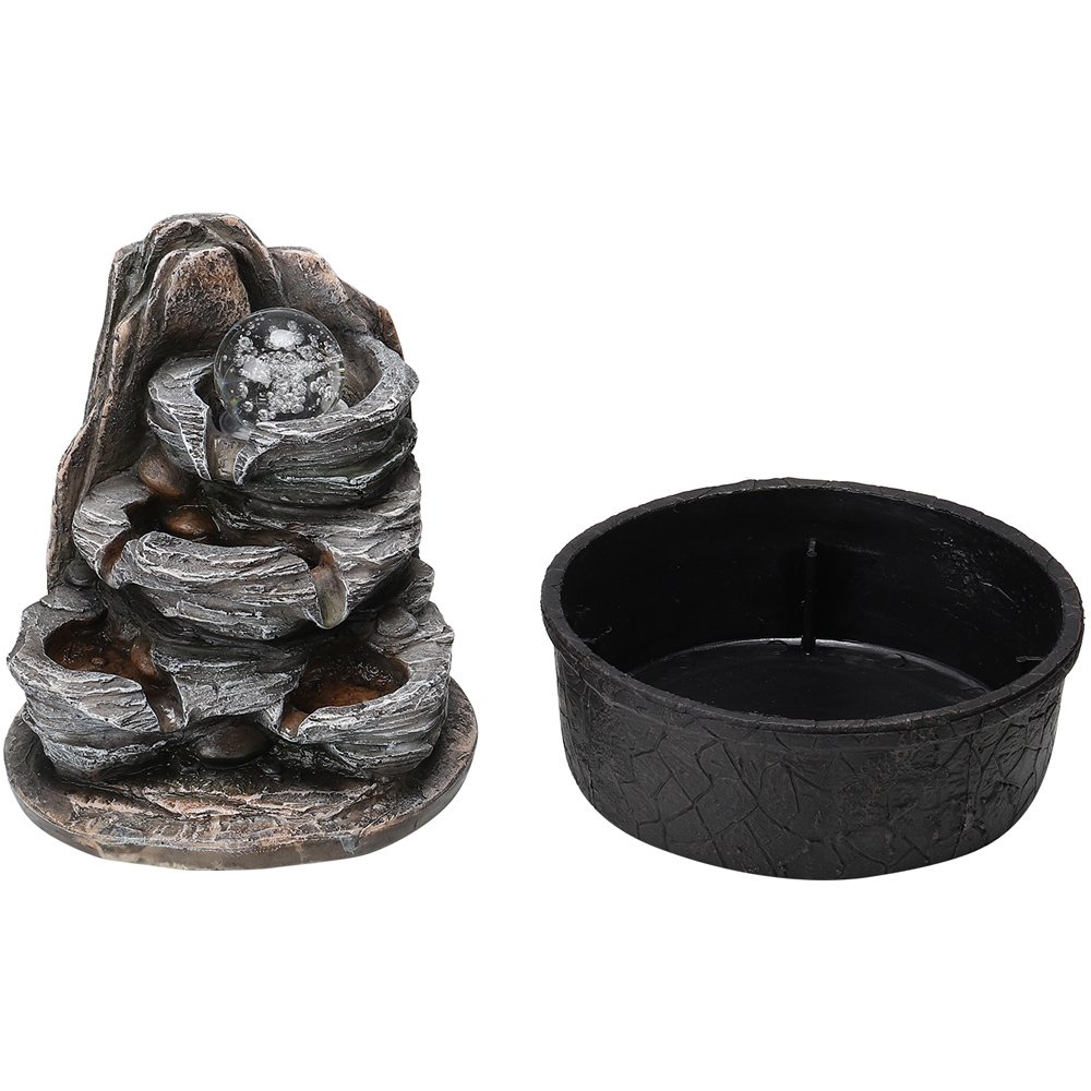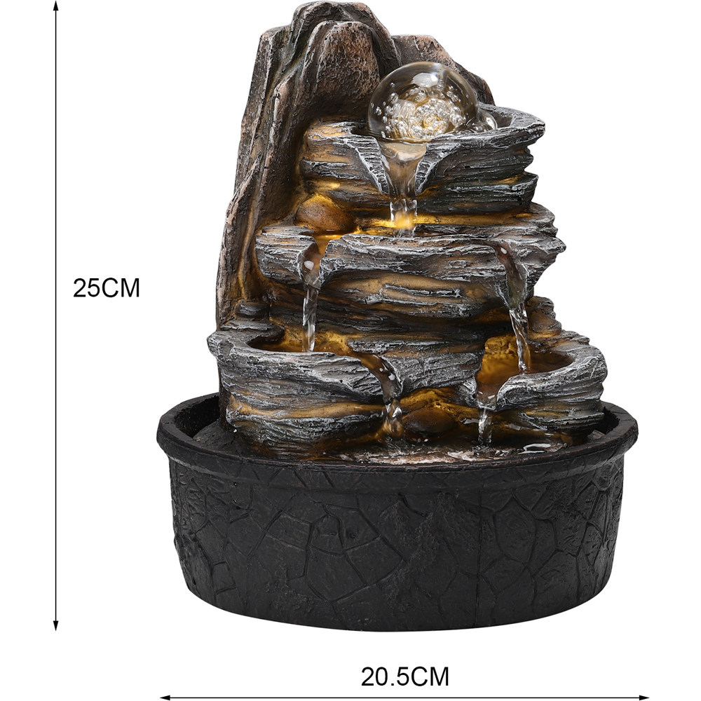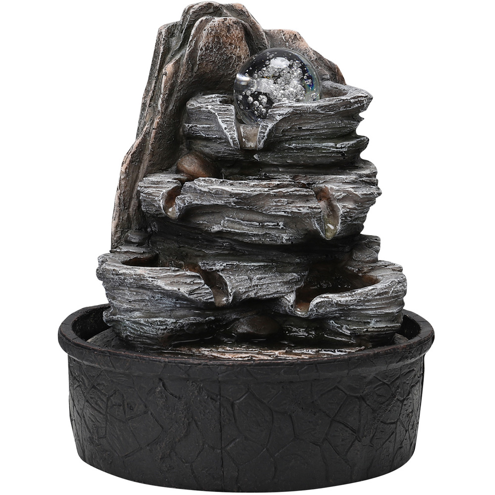 Living and Home Multi Tier Black Rock Fountain with LED Crystal Ball