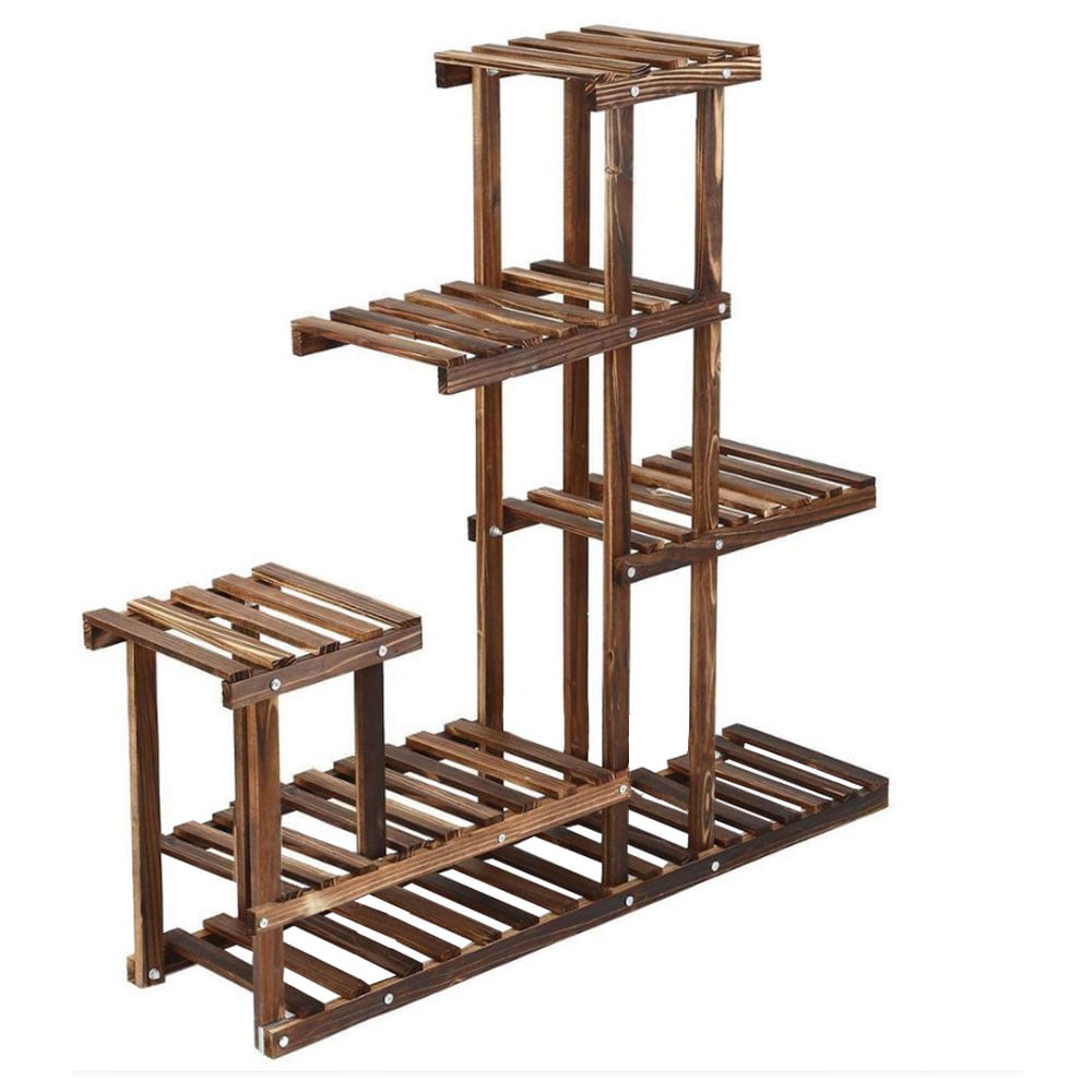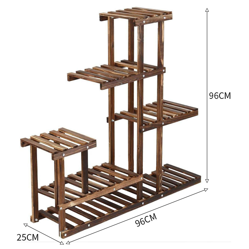 Elevate your plant display with this sturdy Living and Home Multi Tiered Rustic Brown Plant Stand. This plant stand is reliable and adds a touch of natural beauty to your space. Crafted with a strong wooden structure, it guarantees long-lasting durability for daily use. With six spacious platforms, this plant stand offers ample space to showcase your favourite plants in style. The slatted board design on each tier and the staggered layout allow for excellent sun exposure and optimal airflow, ensuring the health and growth of your plants. Setting it up is a breeze, thanks to its simple assembly process. Made from fine wood, this plant stand exudes a rustic charm that complements both your interior and exterior decor.