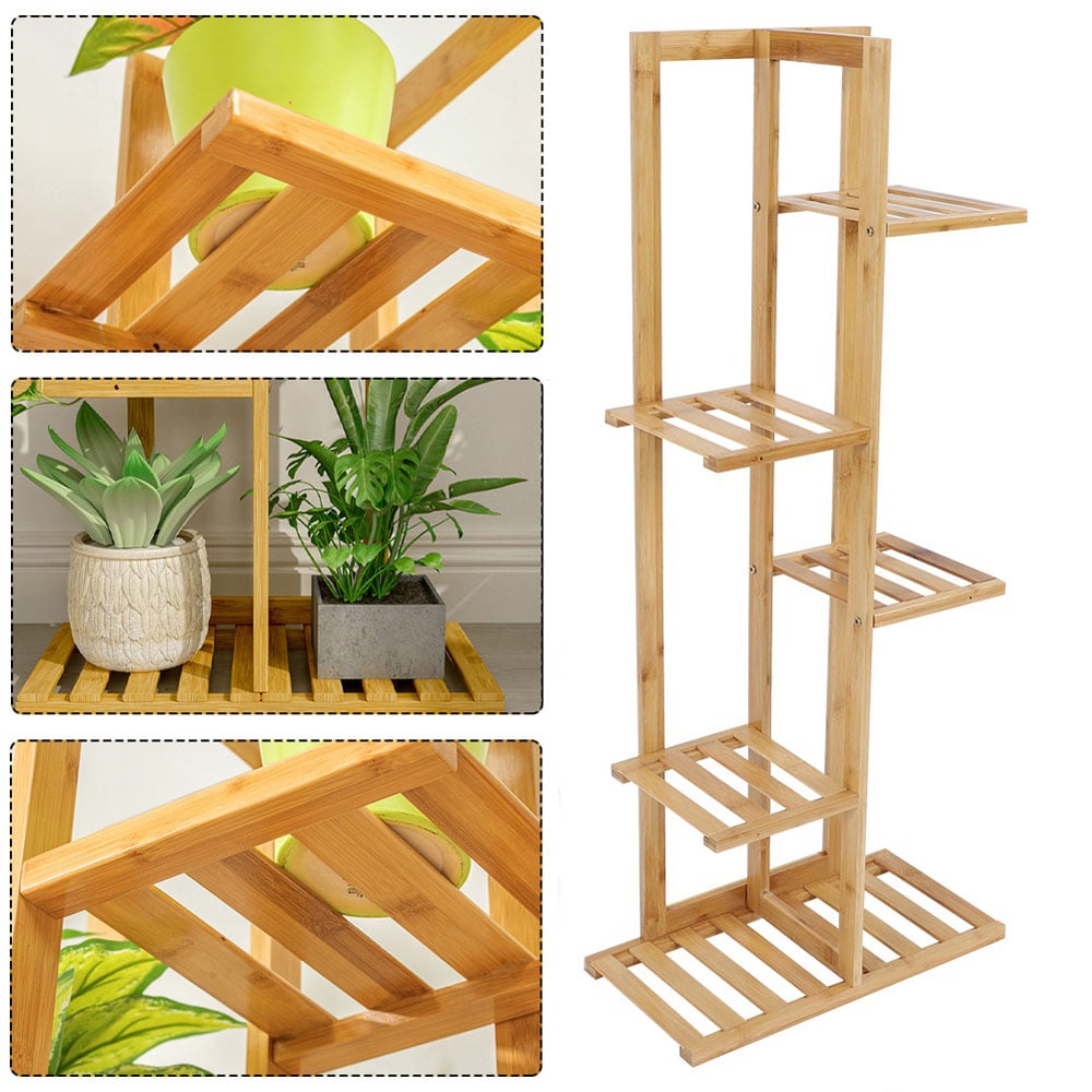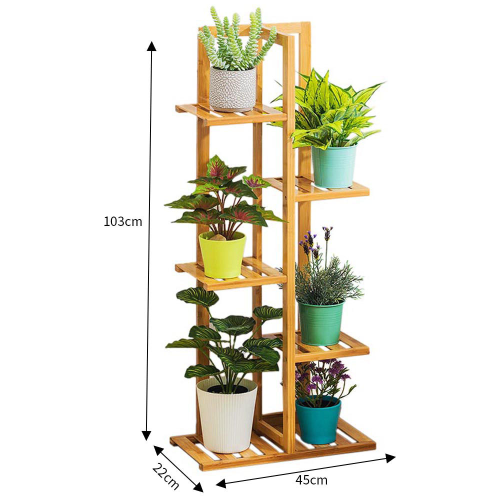 Give your plants a space to breathe with this Living and Home Multitiered Wooden Natural Plant Stand. Designed with open shelves, the stand is beneficial for the growth of plants as they can get sufficient sunlight, and the watering routine is also simplified. It boasts bamboo wood construction, which features a smooth surface and good durability. Organise your favourite plants with this stunning plant stand, which offers excellent space utilisation, strong load-bearing quality and is suitable for indoor and outdoor areas. Dimensions: H103 x L45 x W22cm.