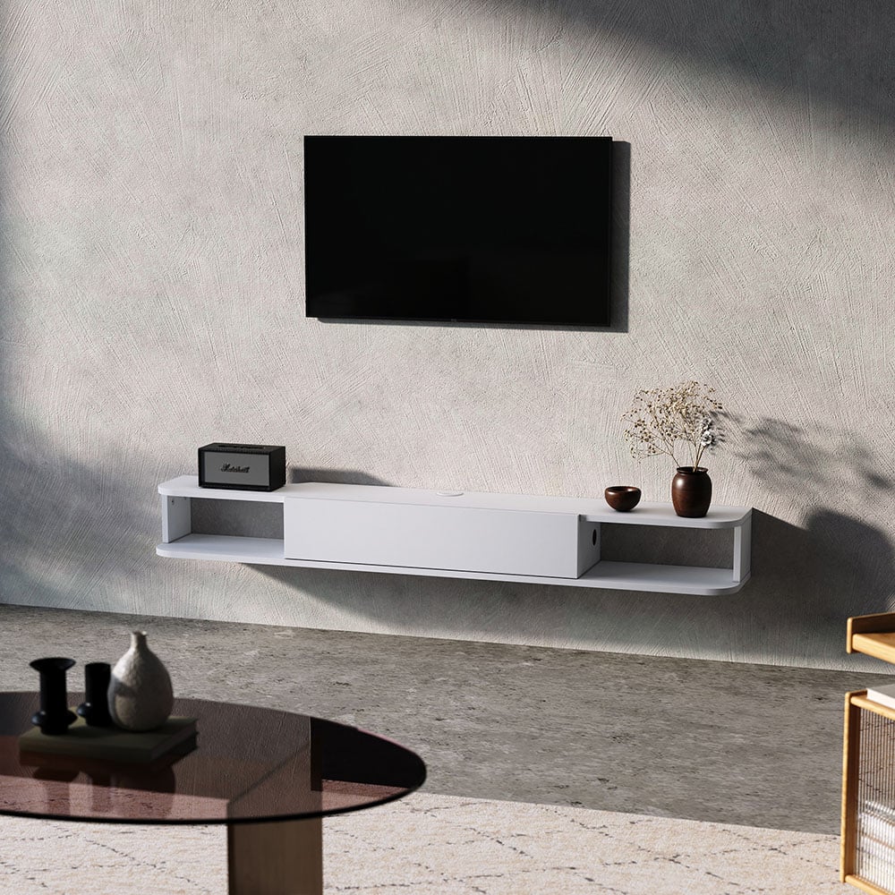 This floating TV stand is the perfect blend of smart design and practicality – ideal for cosy spaces or anyone who loves a clean, uncluttered look. Mount it on your wall to free up precious floor space, with clever cable holes to keep wires neatly tucked away. You’ll get two open shelves for displaying your favourite bits and bobs, plus a handy flip-down compartment to hide away the messy stuff. The sleek white finish wipes clean in seconds, making it as easy to live with as it is stylish – a fuss-free solution for modern homes.