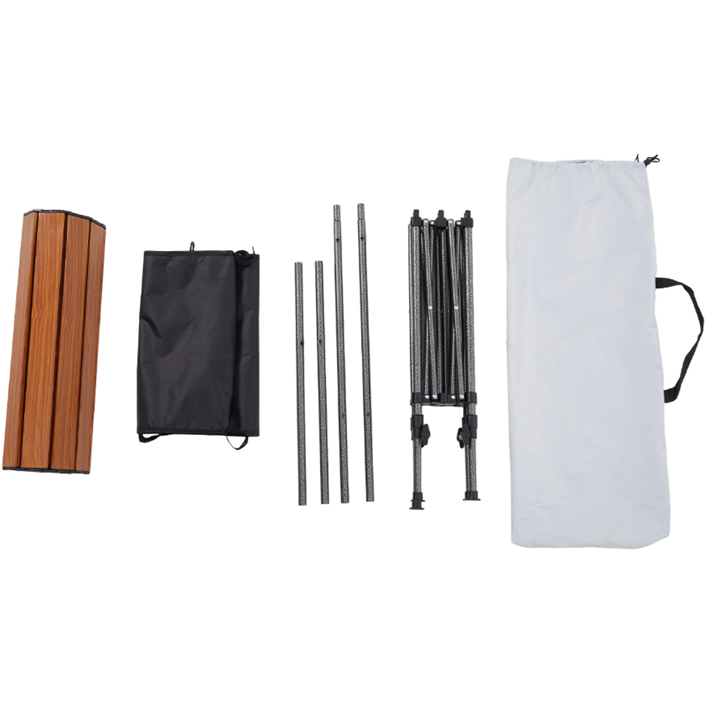 This portable folding camping table is a versatile and practical addition to any outdoor adventure. The roll-up tabletop is heat-resistant, rust-resistant, and easy to clean. Its lightweight and sturdy carbon steel frame with triangular structure ensures durability and strength, providing reliable support. The foldable design allows you to easily collapse into a compact size. Ideal for camping, picnics, tailgating, or any outdoor event, this table provides a reliable surface wherever you go. Moreover, it comes with a storage bag to be tucked away in your car or camping gear without taking up too much space.
