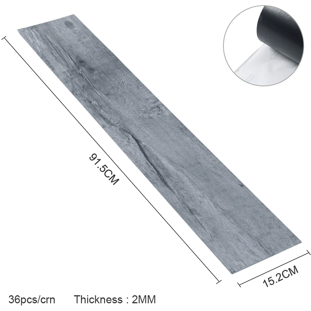 Make a rustic addition to your home decor with the Living and Home PVC Realistic Wood Effect Plank Flooring 36 Pack. This flooring resembles real wood grain with a natural and authentic wooden appearance. It is crafted using solid PVC material for durability and longevity. It is perfect for areas with heavy foot traffic as it features a sturdy and durable design. This self-adhesive DIY flooring is ideal for all types of interior spaces with its straightforward installation. Single flooring panel size: 91.5 x 15.2cm.