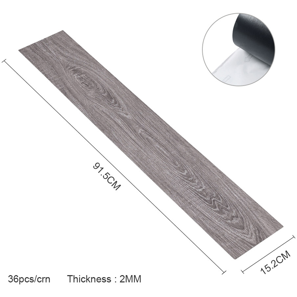 Make a rustic addition to your home decor with the Living and Home PVC Wood Effect Plank Flooring 36 Pack. This flooring resembles real wood grain with a natural and authentic wooden appearance. It is crafted using solid PVC material for durability and longevity. It is perfect for areas with heavy foot traffic as it features a sturdy and durable design. This self-adhesive DIY flooring is ideal for all types of interior spaces with its straightforward installation. Single flooring panel size: 91.5 x 15.2cm.