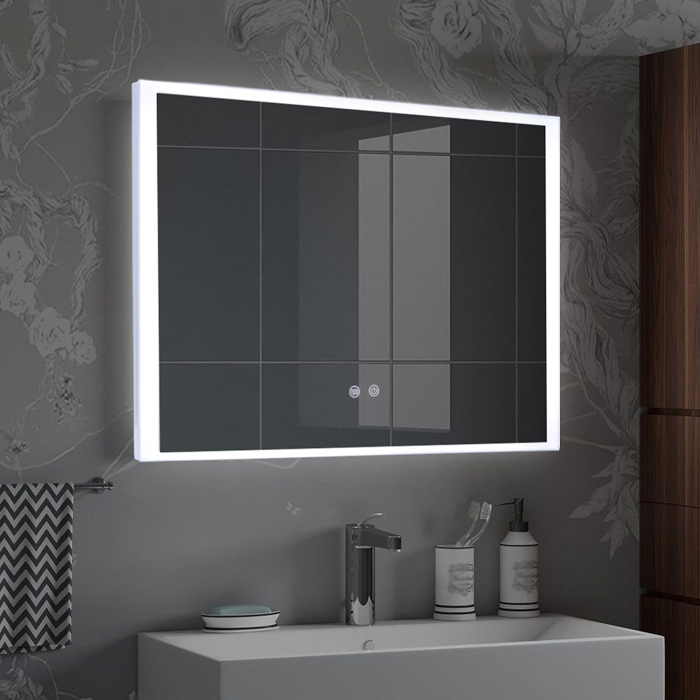 You will come to realize that less is more with this LED mirror. Crafted in a simple rectangular frame, the mirror has a large mirrored surface with an LED rim. And an anti-fog pad is included to ensure visibility even after a hot shower. You can easily adjust the lighting temperature among warm, neutral and cold via the touch control screen. On top of that, the mirror has passed the UKCA certification, so you can rely on its premium quality and safety.