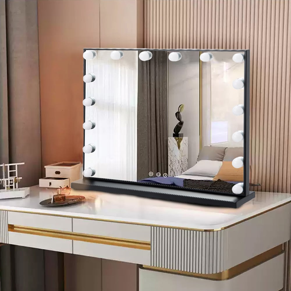 Upgrade your space with Living and Home Rectangle LED Makeup Vanity Mirror. It is the perfect blend of functionality and elegance. Featuring a smart sensor screen, this mirror allows you to easily adjust the colour temperature and brightness to suit your makeup needs. The LED lights provide a soft, natural glow that’s gentle on your eyes, ensuring clear and flattering illumination without any harshness. With its sleek design, this mirror adds a touch of sophistication to any bedroom or dressing area.