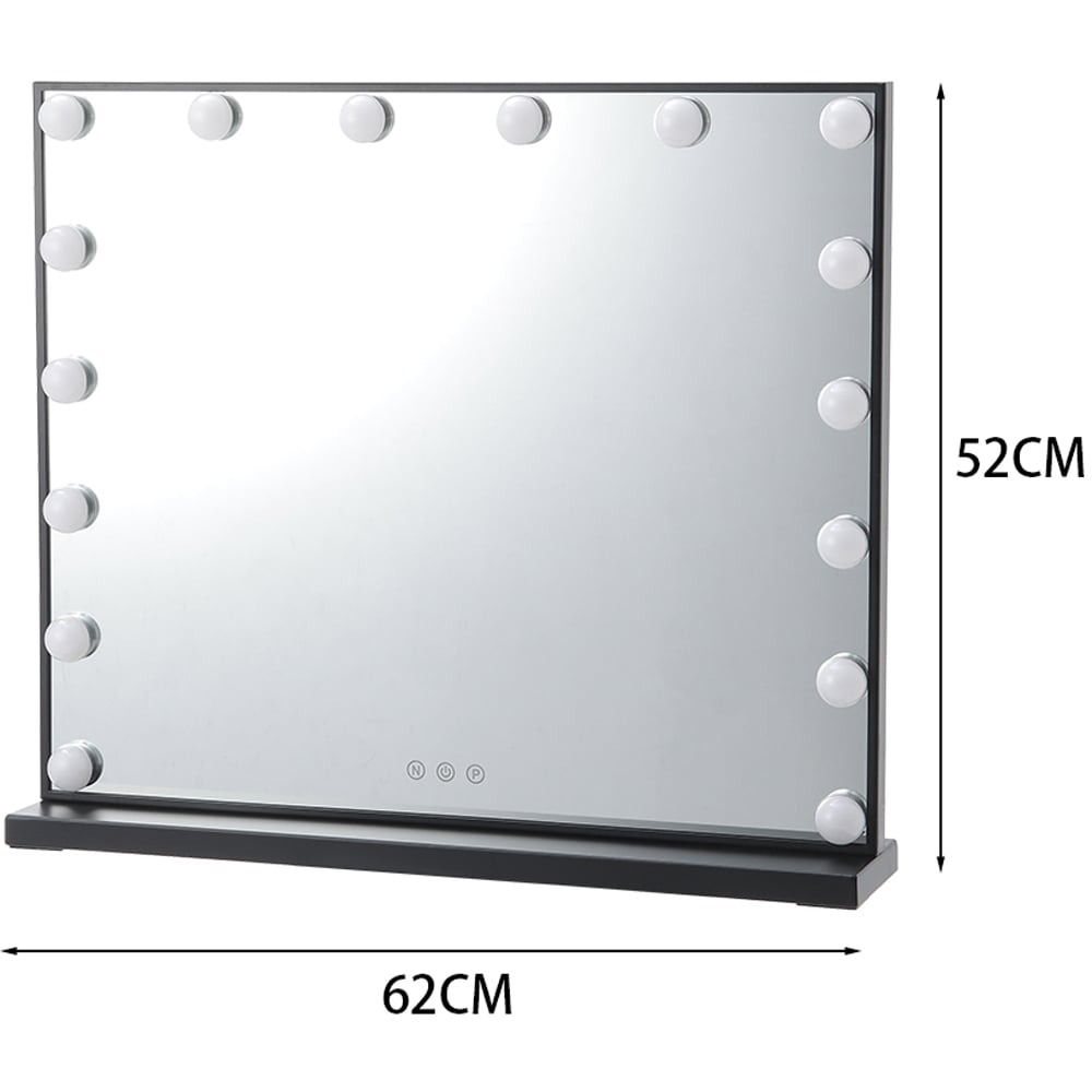 Living and Home Black Rectangle LED Vanity Makeup Mirror 62 x 52cm