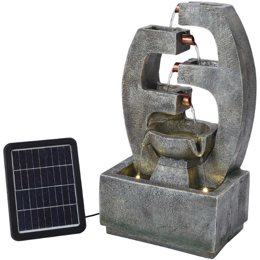 Living and Home Solar Powered 3-Tier Dark Grey Rockery Fountain