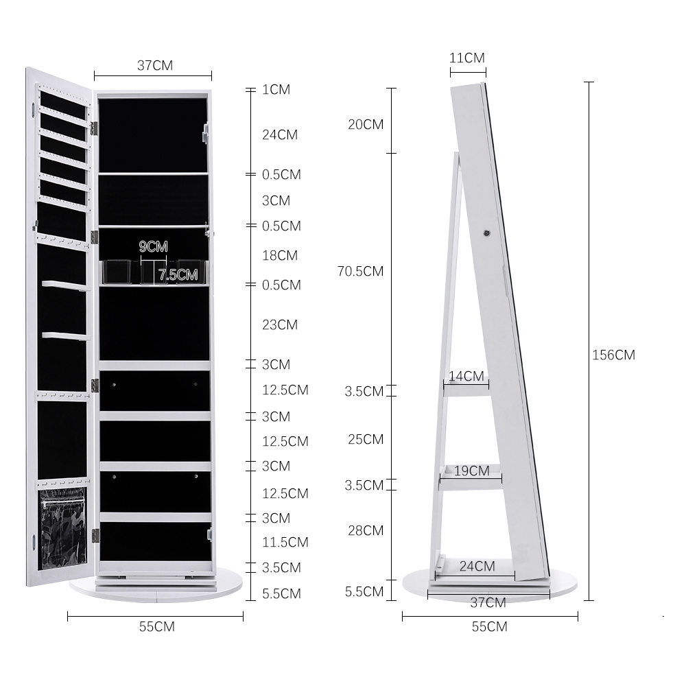 Julian Bowen Prima White Mirrored Jewellery Organiser Floor Cabinet