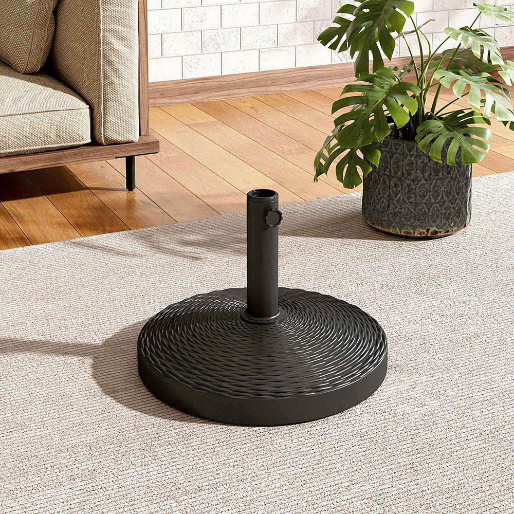 Elevate your outdoor experience with Living and Home Round Resin Heavy Duty Parasol Base 14kg. Constructed from lightweight resin, this base is effortlessly portable for any adult, yet it provides the durability needed to keep your garden parasol securely in place. Its distinctive pattern adds a charming flair to your outdoor decor. Assembled with high-quality resin, it is designed to withstand various weather conditions, ensuring durability for long-term outdoor use.