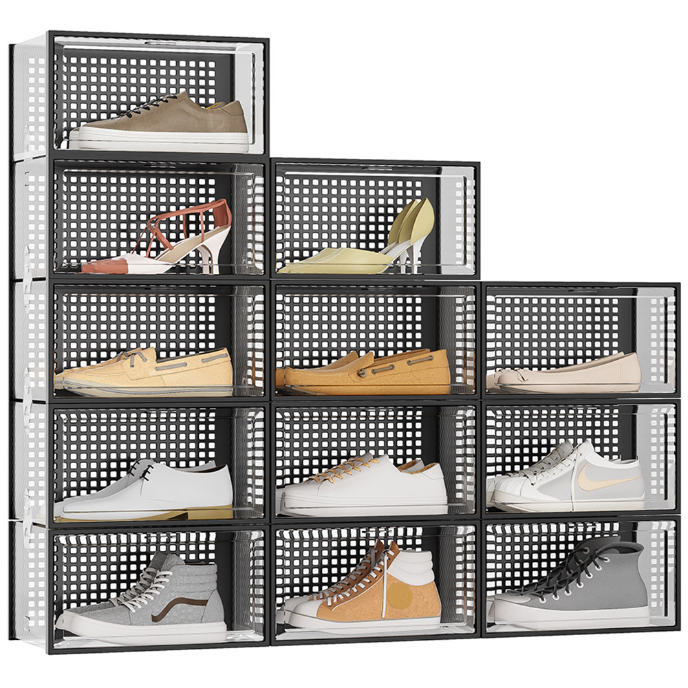 Living and Home Set of 12 Clear Plastic Stackable Shoe Storage Box 18cm