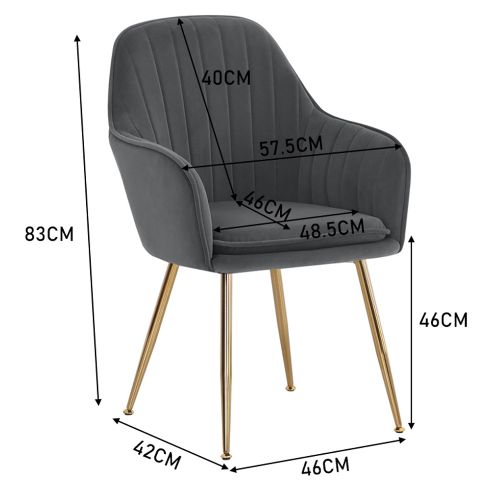 Discover luxury and comfort with Living and Home Set of 2 Grey Modern Velvet Upholstered Dining Chair. It features soft velvet upholstery and high-density foam cushions. This chair seamlessly combines style and practicality boasting an elegant design with a sleek back and stitching details. To give it a more classy touch, it has glossy gold legs that add a touch of luxury and sophistication.