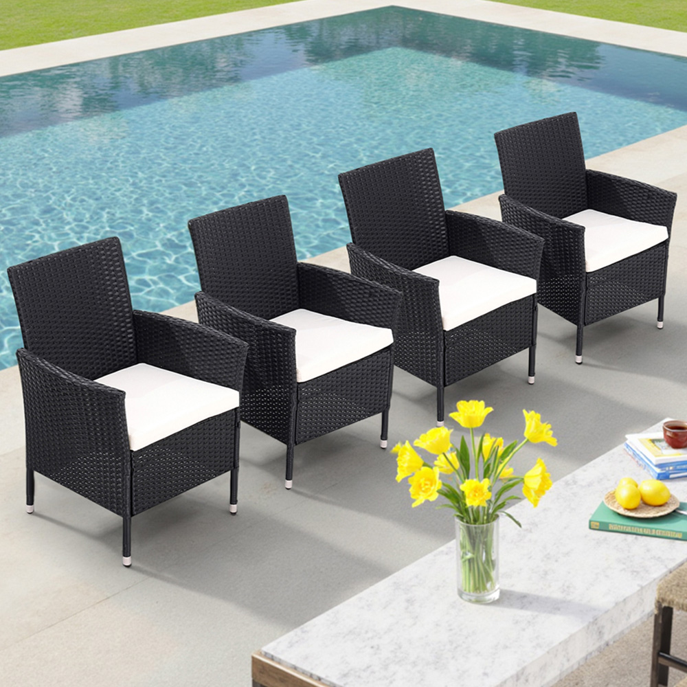 Transform your space with this Set of 4 rattan chair. It blends nature and style with its simple, minimalist design. Hand-woven from high-quality rattan, it shows fine, even textures that bring out a natural feel. The combined backrest and armrests aren’t just attractive, they’re practical too. The backrest is designed to follow the body’s natural curves, helping to ease tiredness from sitting for long periods. Smooth armrests add extra comfort when you rest your arms. Whether in a sunroom, on a terrace, or tucked into a living room corner, this set adds a relaxed, natural touch to your home.