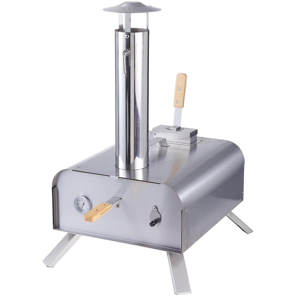 Enjoy the rich and smoky flavour of a traditional stone-baked pizza with our pizza oven. Thanks to its full stainless steel construction, this oven heats up quickly, reaching optimal cooking temperature in minutes. Paired with a pizza stone, this oven ensures even heat distribution and delivers professional-quality, crisp pizzas every time. Powered by wood pellets, it delivers the flavour of traditional wood-fired pizzas. The easy-to-use fuel hopper allows for continuous refuelling, ensuring a steady heat supply. Perfect for pizza lovers, outdoor enthusiasts, and home chefs alike.