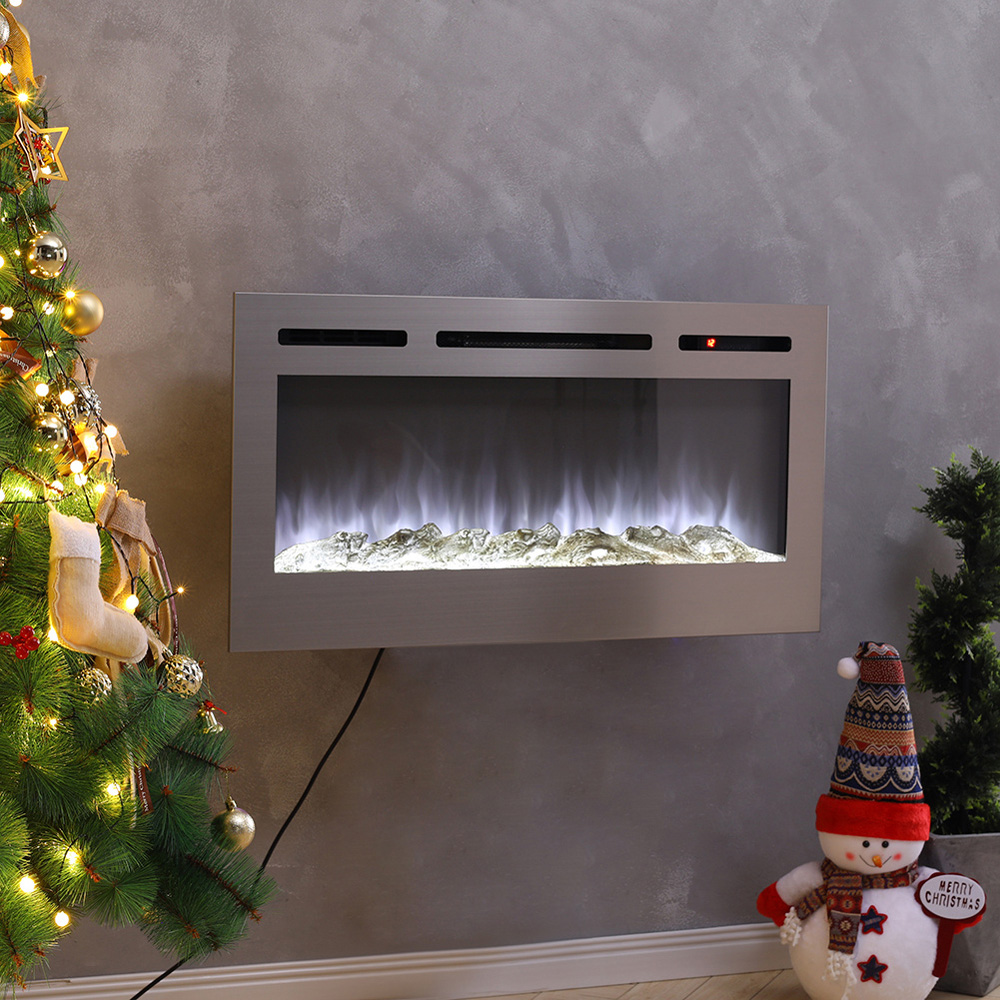 Living and Home Electric Fireplace: Enhance your living space with this eco-friendly fireplace featuring ultra-realistic logs and crystals that create a vivid burning flame, offering a safe and authentic fire experience. Enjoy year-round ambience with the option to operate the 12-colour adjustable polychromatic flames independently without heat, allowing you to admire the scene indefinitely. This versatile unit delivers efficient 5120 BTU heating optimised for spaces up to 400 sq ft, complete with five adjustable brightness levels and precise temperature control (62°F to 82°F). User convenience is ensured through an LED display, electronic timer (1-8 hours auto shut-off), and essential safety features including thermal cut-off and overheat protection. Customise your flame effect and heating to perfectly match any occasion with multiple fuel bed options (logs or crystals). It has two installation methods, including wall-mounted and recessed.