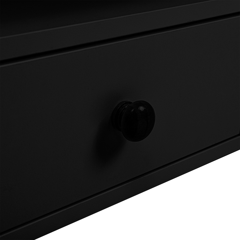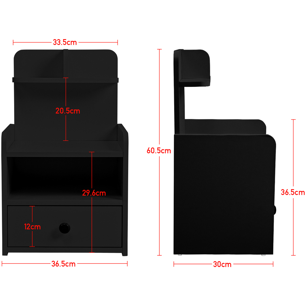 Redefine your living space with the Living and Home Single Drawer 4 Shelf Black Bedside Table. The bedside table is designed to maximise vertical space with the addition of a convenient shelf. Featuring multiple compartments, this nightstand provides ample storage for your everyday items and personal belongings. The two raised guards on each side prevent your belongings from tipping over, making it an ideal choice for those with a lot of bedside essentials or for compact spaces. Its practicality is matched by its elegant design, with a classic waxed top, and lacquered and glazed frame that exudes an air of sophistication. Made of MDF and wood, this bedside table is not only stylish but also easy to clean and assemble, making it a perfect addition to any room.
