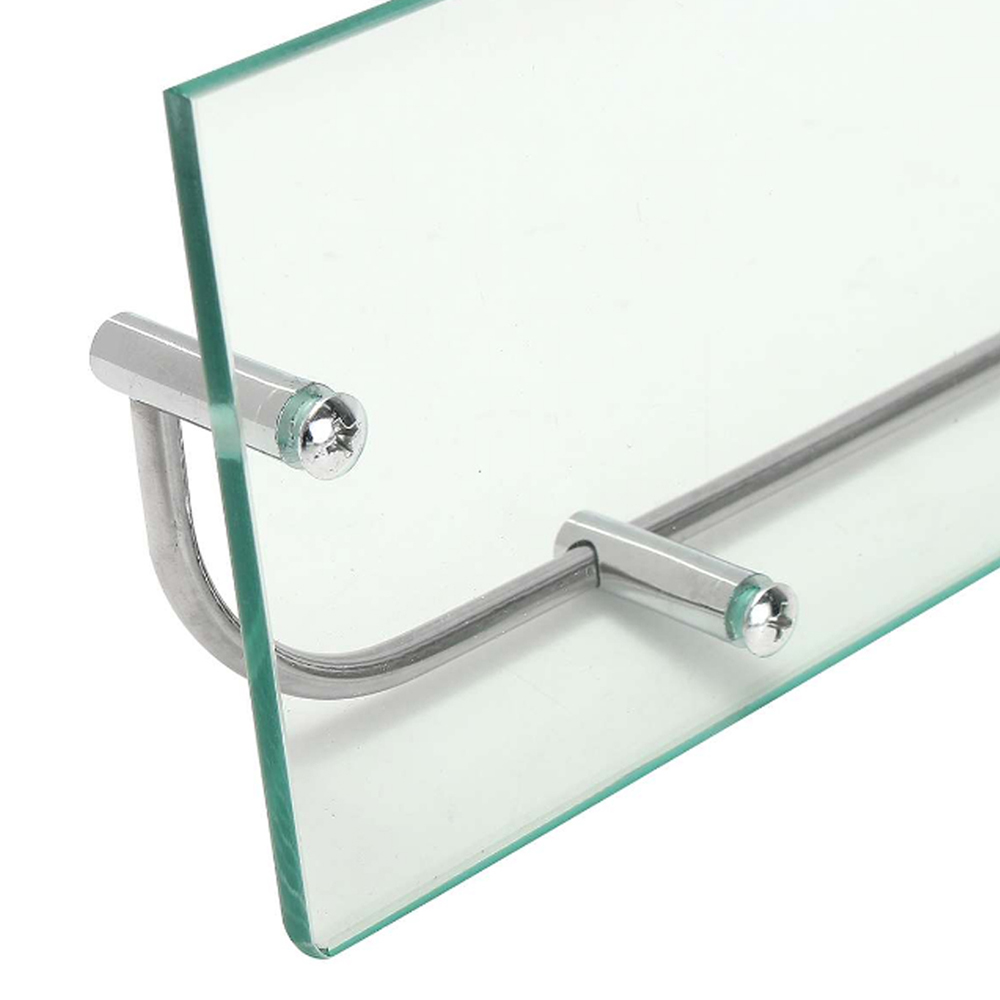 Elevate your bathroom with the Living and Home 50cm Wall Mounted Bathroom Storage Shelf. This floating glass shelf provides flexible storage options while enhancing the decor of your bathroom. Its extra-thick (6mm) tempered glass construction offers a secure storage option that is also safe for kids. It can be easily maintained and cleaned with a moist cloth in humid situations. This classic style complements bathroom furnishings and is perfect for storing towels, accessories, and soaps. Also, the shelf is made of sturdy, rust-resistant, and long-lasting aluminium, providing long-term durability. Size: 50cm.