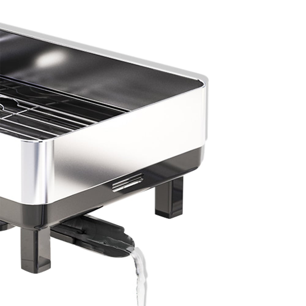 Create a clean and tidy kitchen countertop with this Stainless Steel Dish Drainer Rack Kitchen Organiser from Living and Home. Featuring a large capacity, the utensil holder can hold more than 20 pieces of flatware and four knives. This drainer rack is made of premium 304 stainless steel, making it rustproof and durable to fit in kitchen environments. Also, with its smooth surface, the rack is also easy to clean and anti-fingerprint. Plus, it comes with a drainboard and a 360° rotatable swivel spout to allow excess water to drain. This dish rack will be the perfect washing-up companion for your kitchen. Size: 18.3 x 54.3 x 34.8cm.