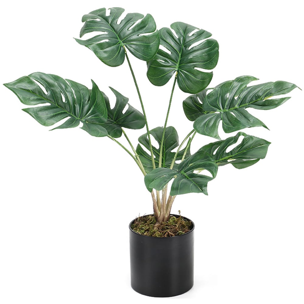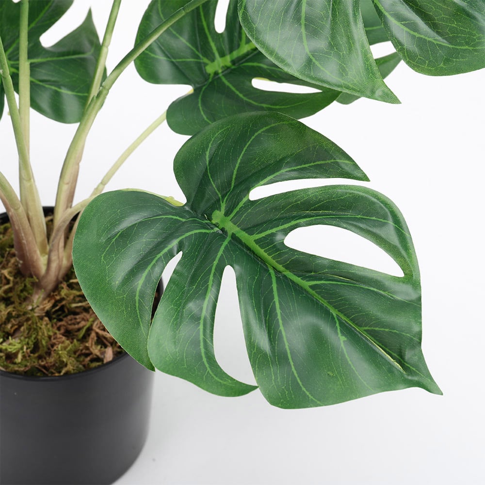 Transform any space into a sanctuary of floral enchantment with this Living and Home Artificial Plant in Black Plastic Pot 53cm. Standing tall from a black plastic pot, this fake monstera deliciosa with distinctive perforated and deeply cut large heart-shaped leaves will impress everyone. Its plastic craftsmanship and the faux moss to cover the surface makes it look more realistic. The sturdy stalks help the leaves stay upright, and it is an evergreen year-round decor for home and office.