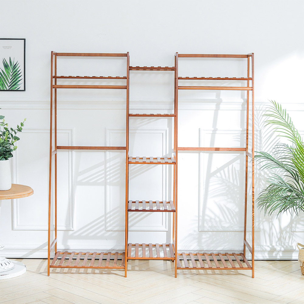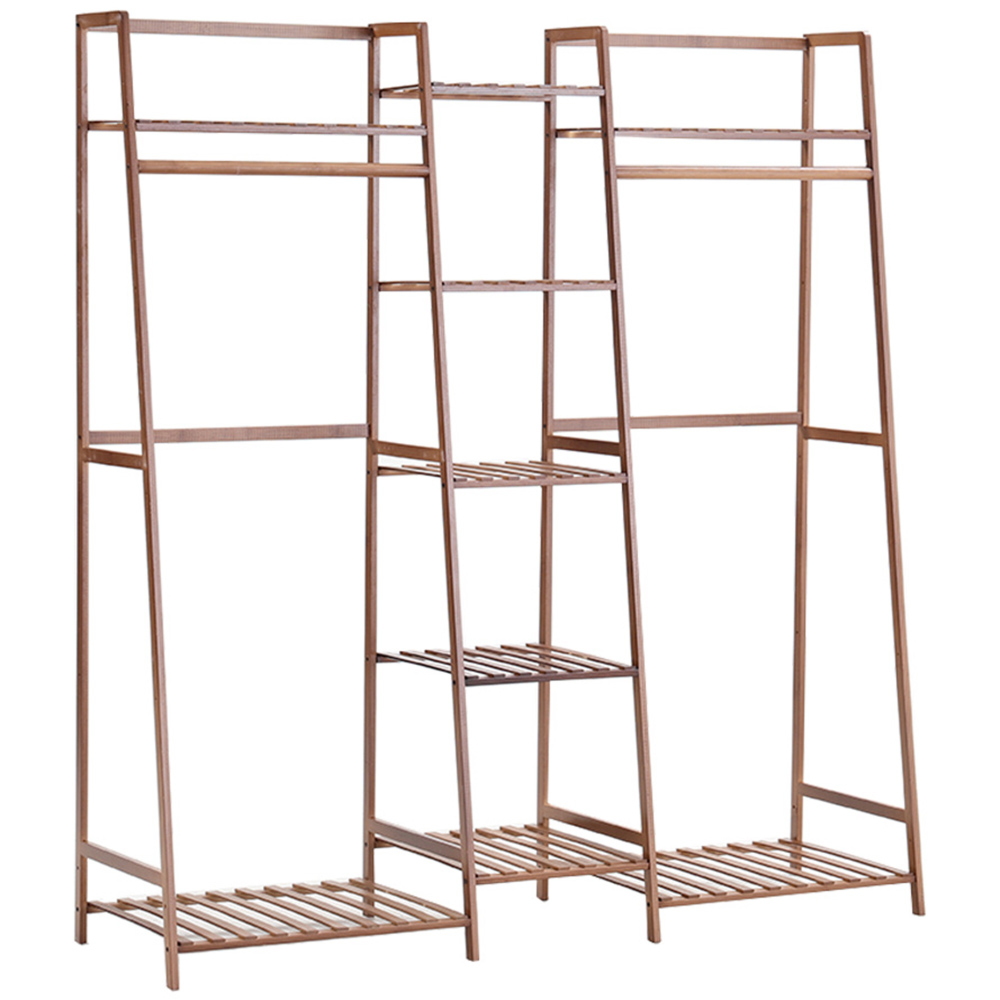 Living and Home Multi-Tier Brown Bamboo Clothing Rack with Storage Shelf