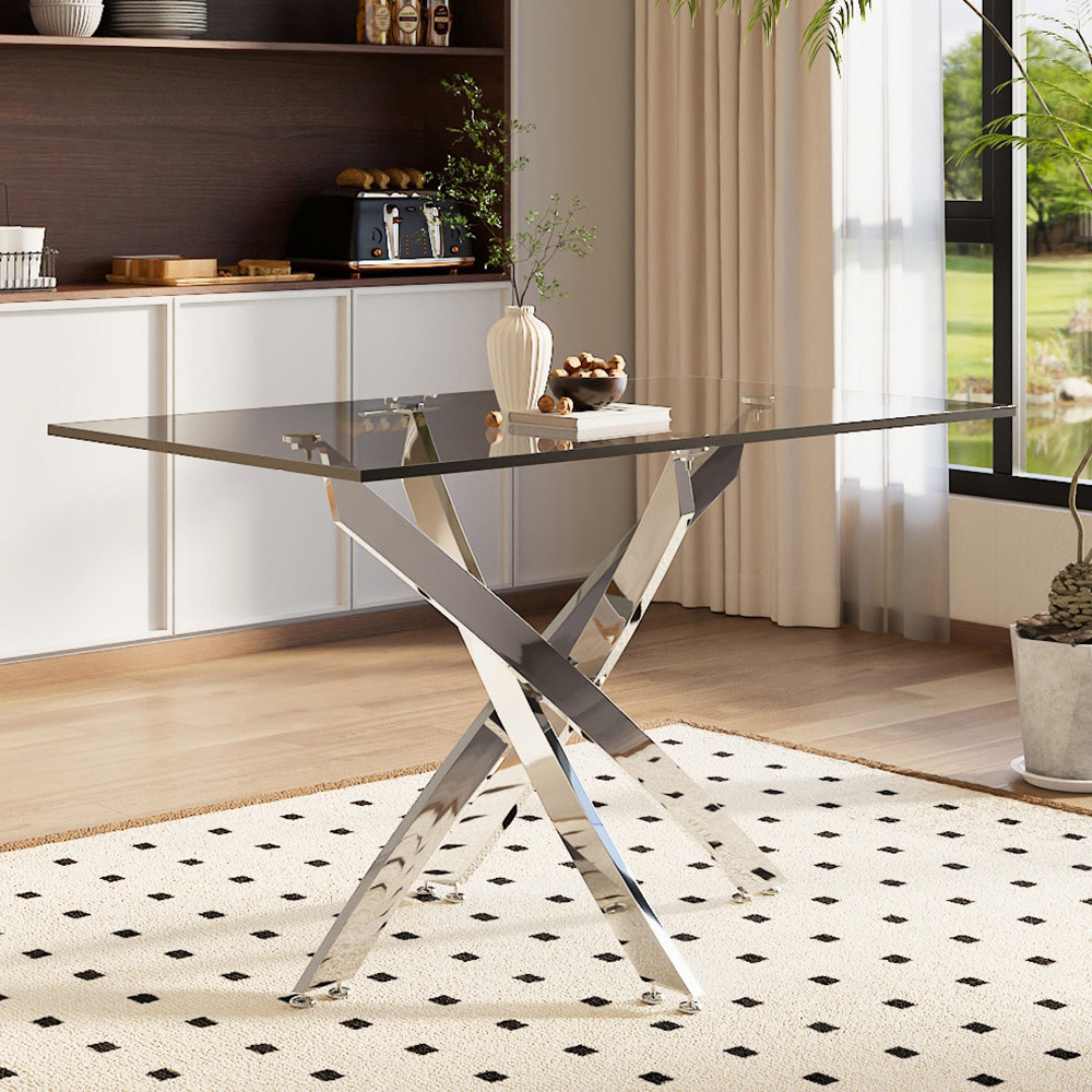 Enhance your space with the Living and Home Tempered Glass Coffee Table. This striking coffee table features four bevelled chrome legs in an eye-catching cluster design, supporting a clear tempered glass top. Its minimal yet shiny design can serve as a standout piece in any contemporary room. With non-slip rubber mats on each leg and sturdy construction, it's ideal for compact spaces.