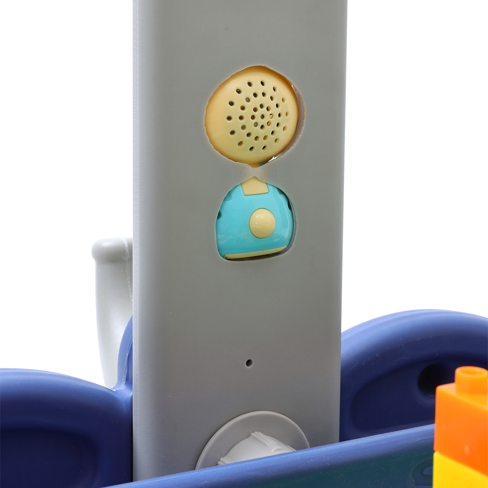 Watch your little one explore adventures with the Living and Home Toddlers Basketball Golf Ring Toss Activity Centre. This set is designed to help develop sports skills and features an ergonomic triangular base with a basketball hoop, a football goal, a golf hole, and a ring toss game. While having fun, children can also practice body and hand-eye coordination. The set includes a height-adjustable basketball hoop to accommodate different ages. When the little ones are less sporty, they can enjoy the activities on the desk on the other side. One side features a drawing board for painting, and when flipped over, it becomes a building block desk.