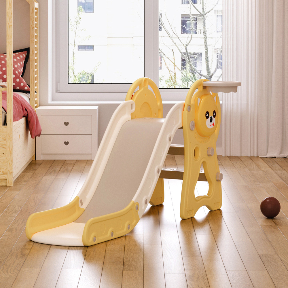 Costway Toddler 3 in 1 Slide and Swing Set with Basketball Hoop