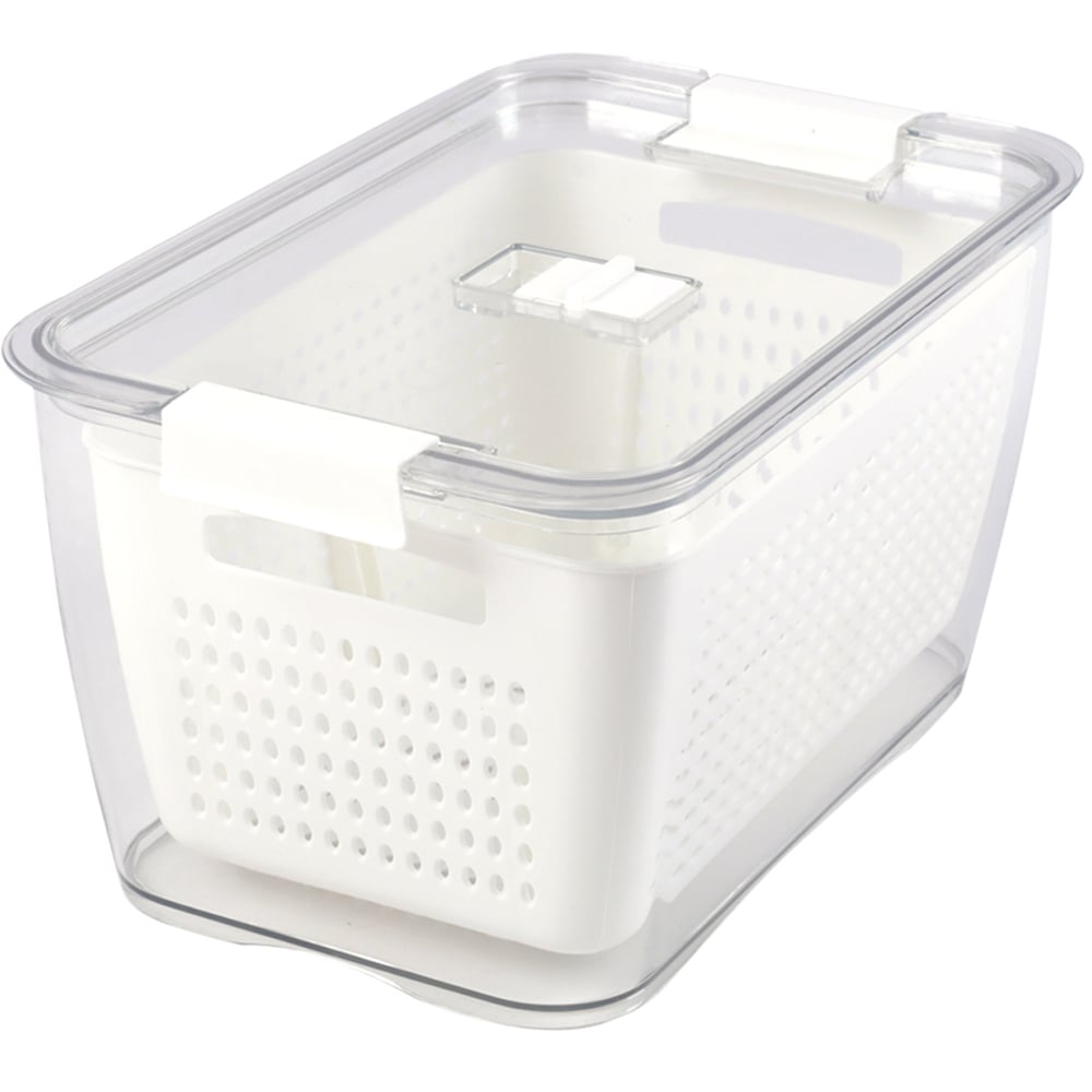 Living and Home Transparent Fridge Storage Container with Drain Basket 1.7L
