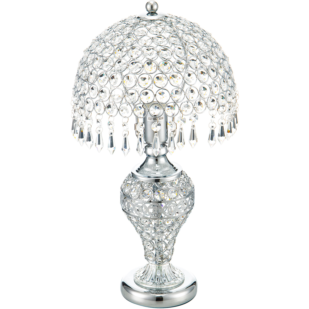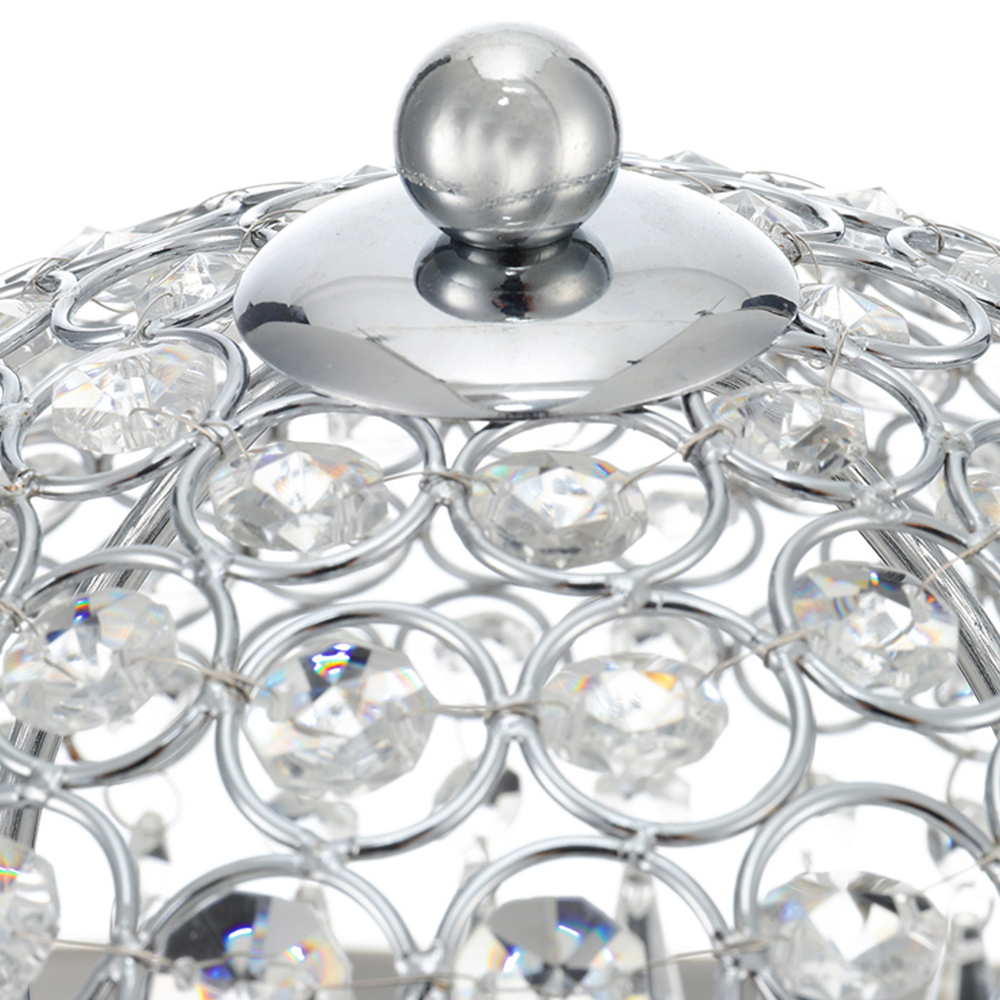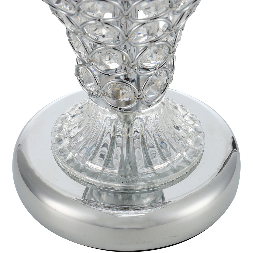 Add a touch of elegance to your room with the Living and Home Umbrella Crystal Table Lamp. Transform your living space with the elegance of this exquisite table lamp, adorned with dazzling crystal embellishments. This stylish lamp is perfect for illuminating your nightstand, creating the perfect ambience for nighttime reading or intimate conversations. Along with the sparkling crystals, the sleek chrome finish brings a contemporary and sophisticated vibe to any room. This unique umbrella-shaped table lamp exudes luxury and is an ideal lighting solution for bedrooms. Please click here to find our range of lightbulbs.