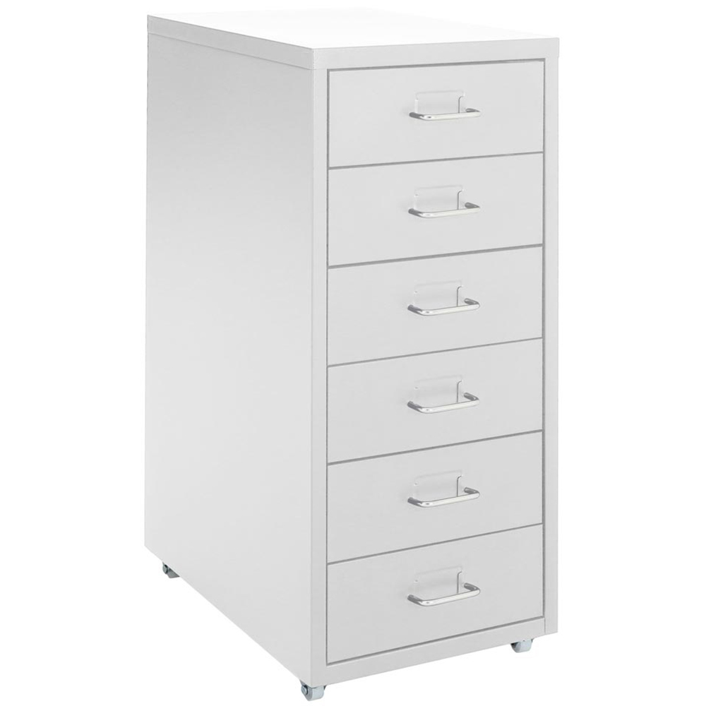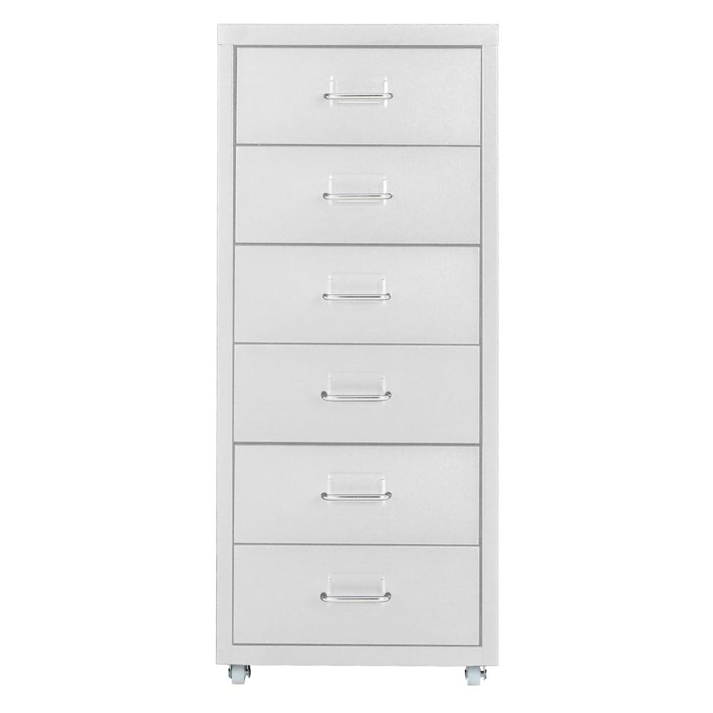 Add style and practicality to your home with this Living and Home White 6-Drawer Cabinet. This sophisticated file cabinet is perfect to store and organize your documents, files and letters. Crafted from selected metal, the solid construction is durable and sturdy to hold heavy papers. Easy to use, the drawers can slide smoothly and quietly for your optimum user experience. Also, each drawer's got a label slot at the front that helps you classify your files. Perfect for your office, this cabinet will surely boost your working efficiency and professional image. Size: H68.5 x W28 x D41cm.