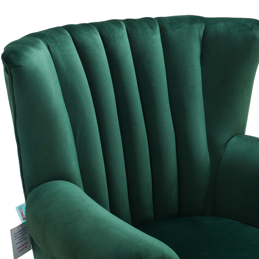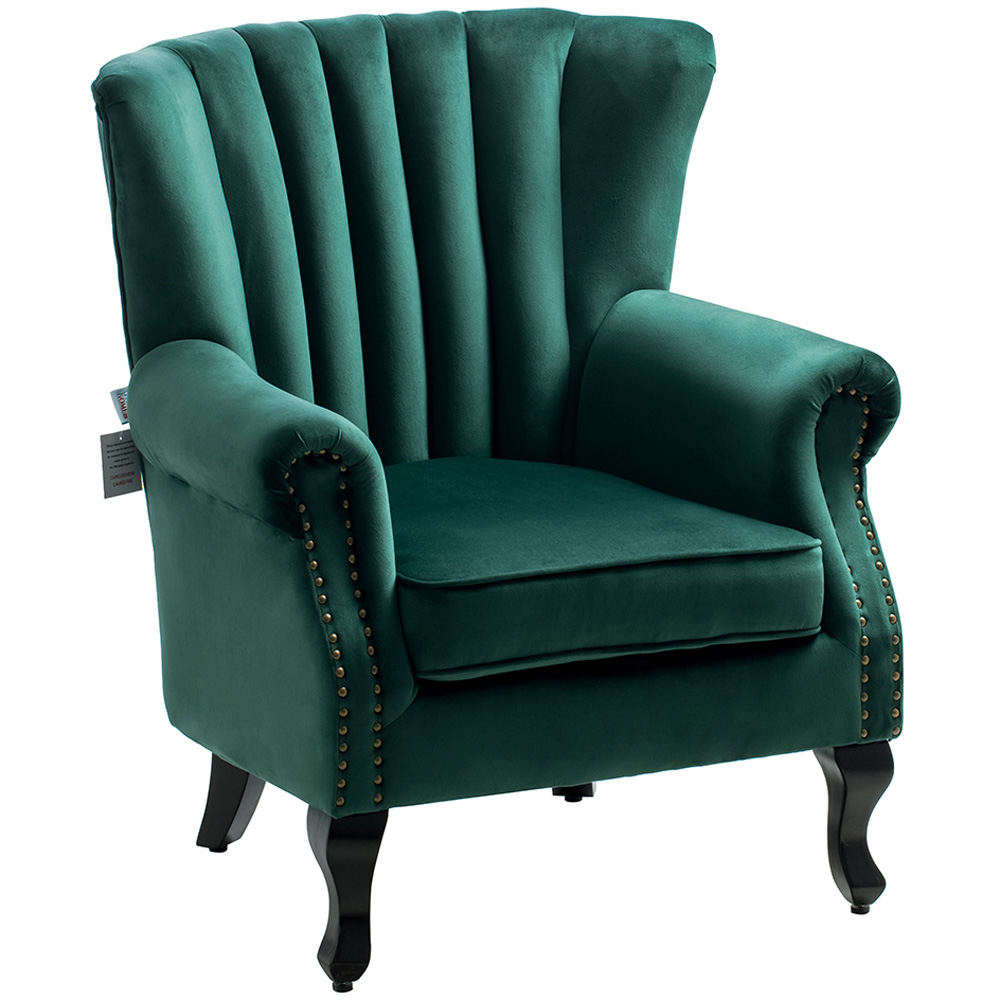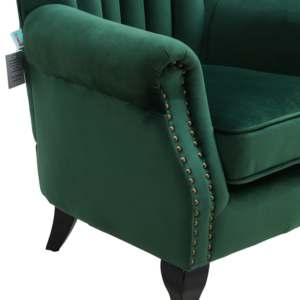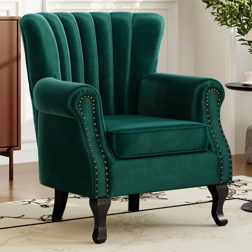 Add a touch of chic elegance to your space with this sleek and stylish velvet armchair, perfect for dressing up your living area. The armchair brings understated luxury to your room, with its channel-tufted back and studded sides radiating sophistication. Upholstered in ultra-soft velvet fabric, the densely filled seat ensures optimal comfort, allowing you to relax in style. No matter how long you spend in it, you'll always rest in the cosiest way possible.
