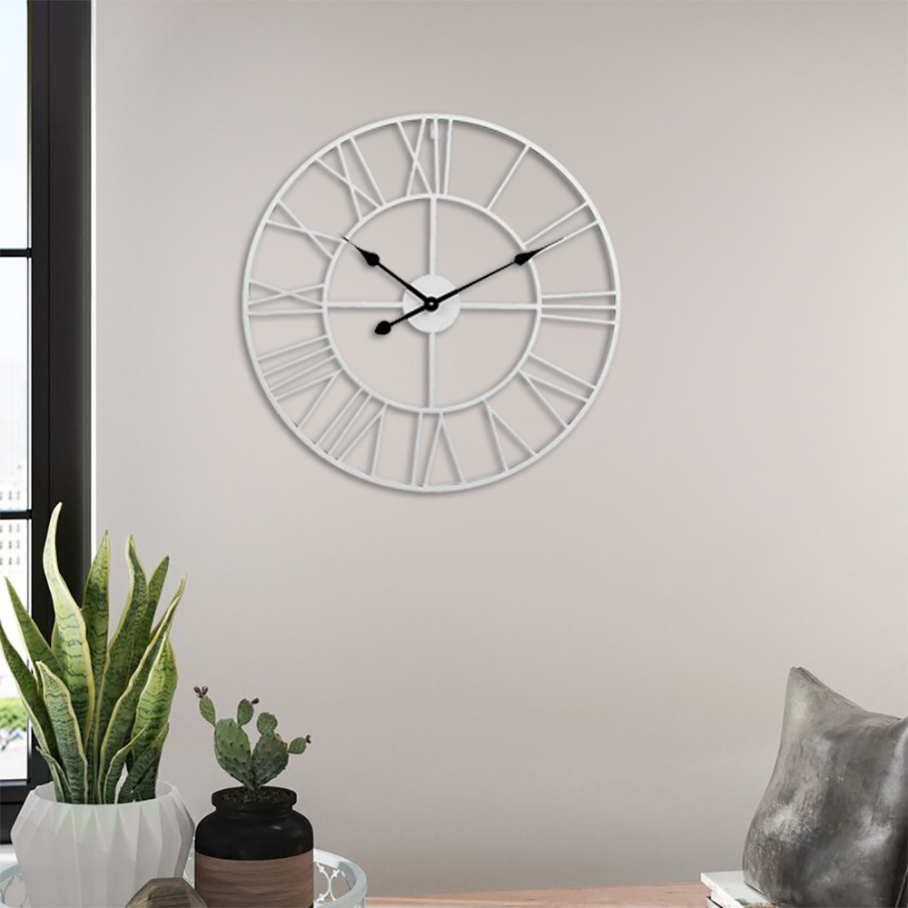 Make a classy addition to your home decor with the Living and Home Vintage Round Wall Clock 40cm. This wall clock is crafted using robust metal with an antique-style design and features large Roman numerals with a cutout frame. This clock features a vintage European design with a sturdy and durable construction.
