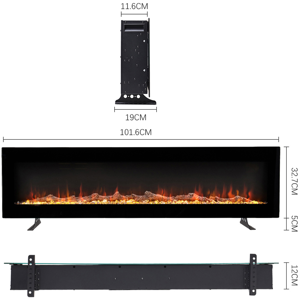 Set the tone of your room with a simple press on the remote control with our Living and Home electric fireplace. You have the flexibility to customise the flame brightness and colour settings, enabling you to create the ideal atmosphere for any occasion. Installing this fireplace is easy and hassle-free. You can mount it on the wall to free up more floor space (Can't Insert Wall) or have it stand on the cabinet for a stunning display. And it comes with all the necessary hardware and clear instructions. Providing powerful heat output, the fireplace can warm up living rooms, bedrooms, and offices, keeping you warm the entire winter. The fireplace showcases realistic burning scenes with crystal and faux firewood accents, offering a safe and efficient alternative to traditional wood-burning fireplaces.
