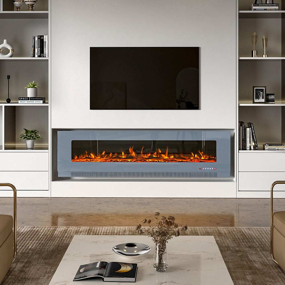 This electric fireplace can save you from a cold, boring winter. It has 9 adjustable flame colours; choose one particular flame colour to suit your current mood. What’s more, it’s powerful in producing heat. It has 5 temperature levels, with a temperature range between 62°F and 82°F. It can turn a freezing corner into a warm one without producing any noise or smoke. Heating coverage area up to 400 square feet. It has five adjustable brightness options that meet your needs. The fireplace showcases realistic burning scenes with crystal and faux firewood accents, offering a safe and efficient alternative to traditional wood-burning fireplaces. At the same time, its automatic safety shutdown function and overheating protection device allow you to not worry about safety issues. It has three installation methods, including wall-mounted, recessed and free-standing. Hang it on the wall, mount it on the wall or simply put it on the ground with the coming brackets.