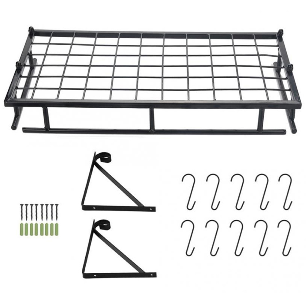 Personalize your kitchen accessory organization with the Living and Home Wall Black Hanging Kitchen Pot Rack. This metal rack's simple yet stylish design is intended to keep your kitchen organized and clutter-free. With its wall-mounted design and 10 strong metal hooks, it helps you conserve valuable room in your kitchen. Keep your culinary supplies close at hand to improve your cooking experience. This versatile shelf can be used in bathrooms, balconies, or kitchens for storing various household items. Dimensions: 60cm x 24cm x 25cm.