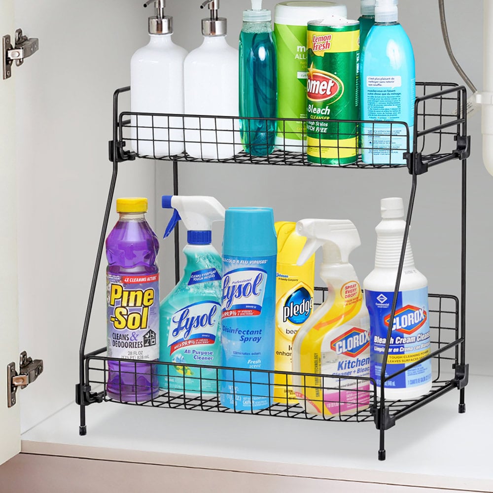 Transform your kitchen into a visually appealing haven with Living and Home Free Standing 2-Tier Bathroom Storage. This storage rack is made of premium metal and has a full powder coating that prevents water and rust. It is ideal for use in the kitchen to arrange spices and other items for cooking. Its double-layer design ensures easy access and organisation; it has plenty of room to store all kitchen necessities. The grid shelves provide useful ventilation and give your room a dash of fashionable flair. Size: Large.