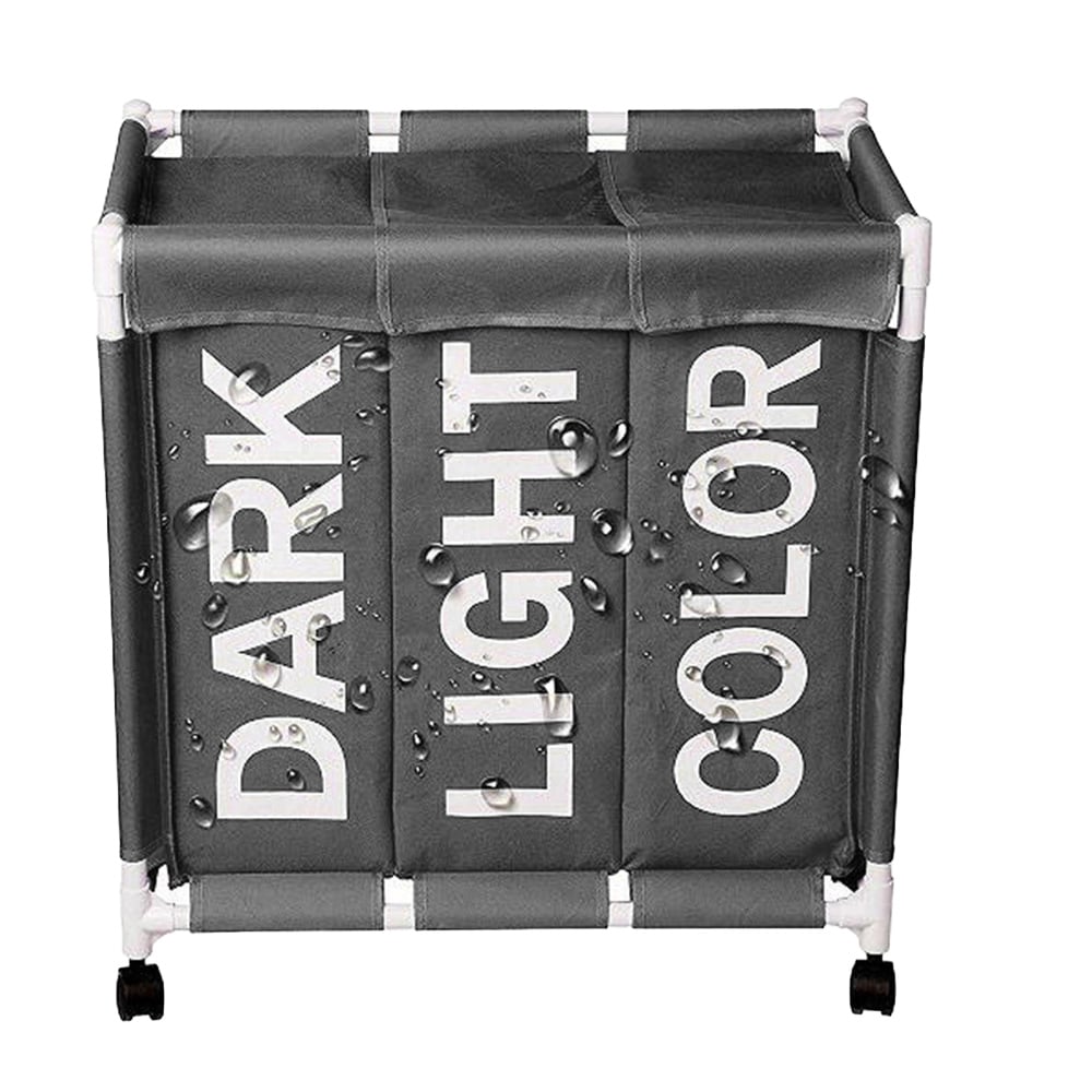 Living and Home 3 Bin Large Dark Grey Laundry Basket with Wheels